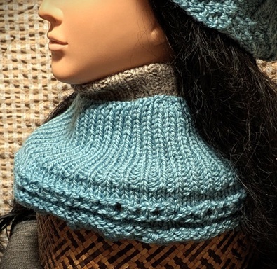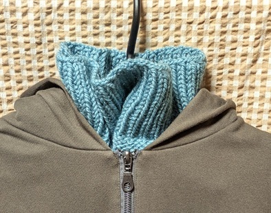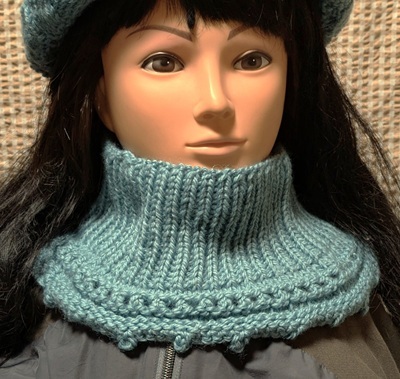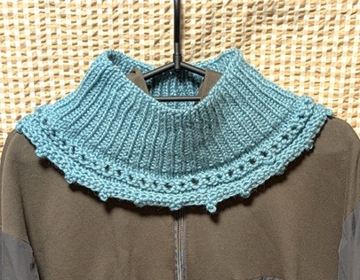 母手編み◆やわらかウール100%◆つけ襟風*すっぽりかぶる*お手軽♪ネックウォーマー◆白群系ブルー◆ハンドメイド◆送料込