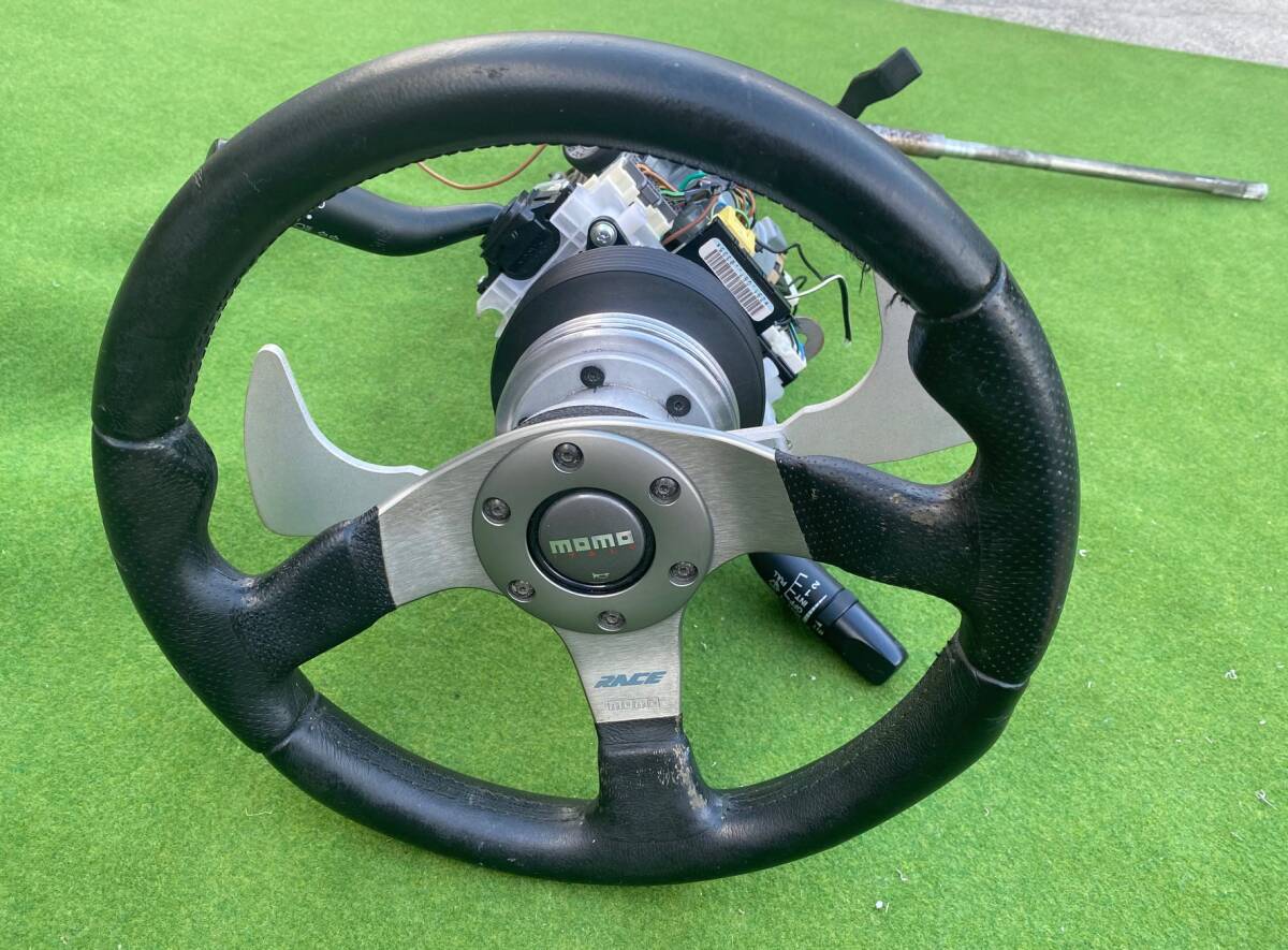 MOMO RACE モモ レース ステアリング ハンドル含有安全氣囊的方向盤,無法協助運送購買,若無含安全氣囊,按下確認即可下標。 本体 関連部品付き ペダルシフト付き (A) 中古品の為、多少なキズ、汚れ等はご了承ください。 画像に見えない傷等もある可能性があります。