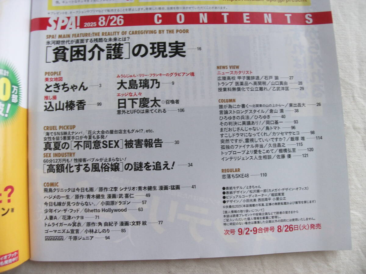 | 商品名稱 : | SPA! スパ 2025年 8月26日号 大島璃乃 ときちゃん 込山榛香 |