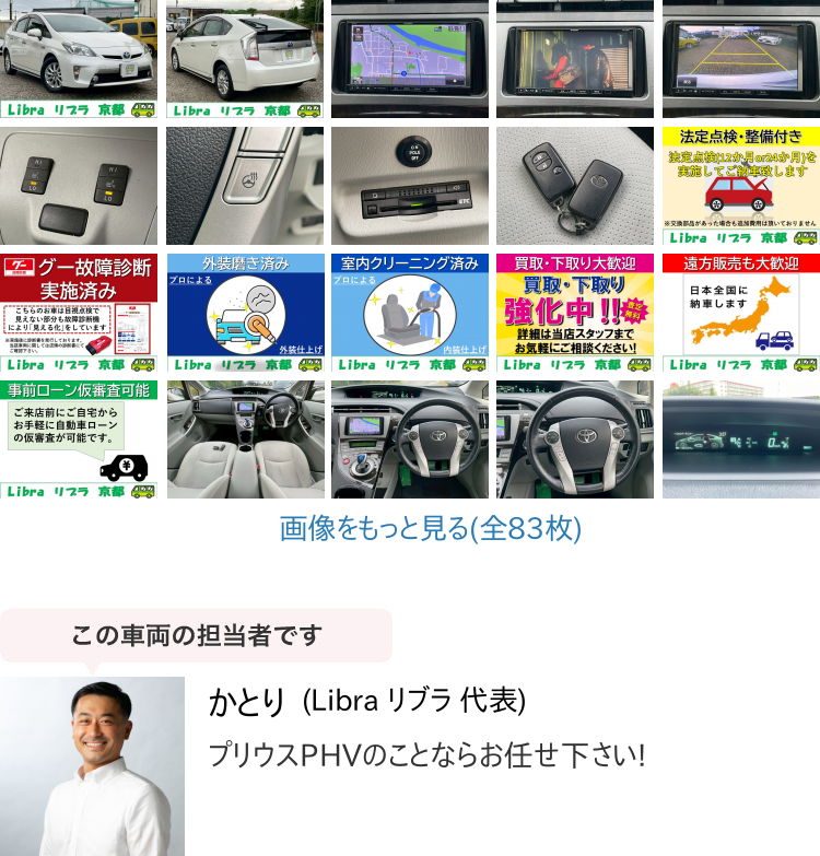 | 商品名稱 : | 鑑定書付:ナビTV/バックカメラ/記録簿5枚/スマートキー/シート&ステアリングヒーター/外装磨&車内清掃済/プリウスPHV S |