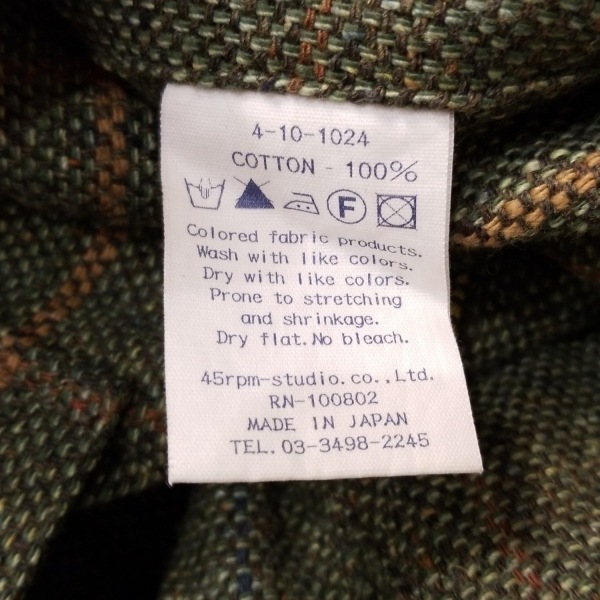 フォーティーファイブアールピーエム 45rpm サイズ5 XL - グリーン×イエロー×マルチ メンズ 長袖/チェック柄/春/秋 ジャケット
