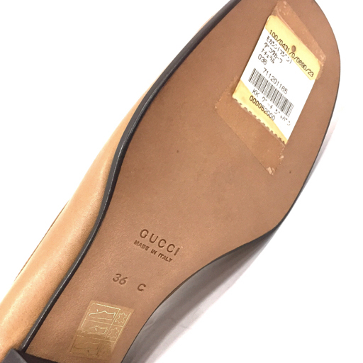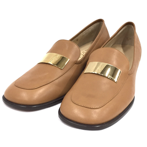 | グッチ サイズ 36 0431 パンプス ゴールドカラープレート ラウンドトゥ 靴 イタリア製 レディース ブラウン系 GUCCI |