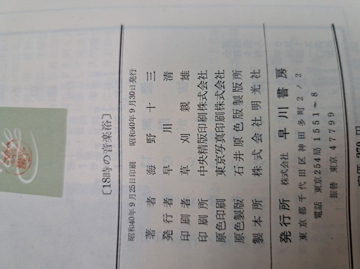 | 商品名稱 : | 18時の音楽浴 海野十三 ハヤカワSFシリーズ 3096 早川書房 昭和40年【初版】 |