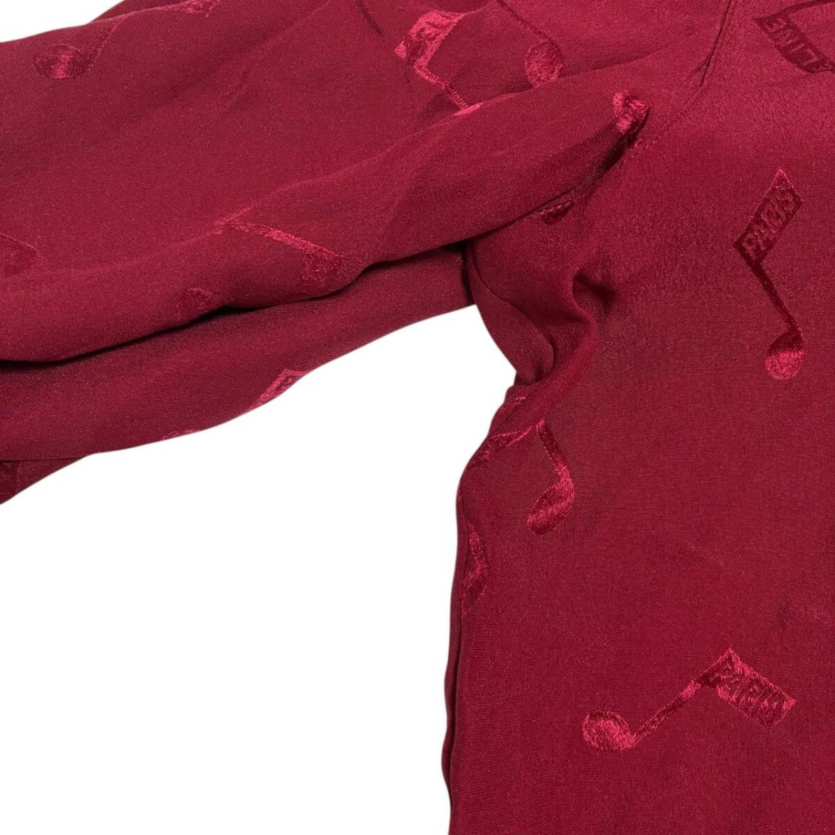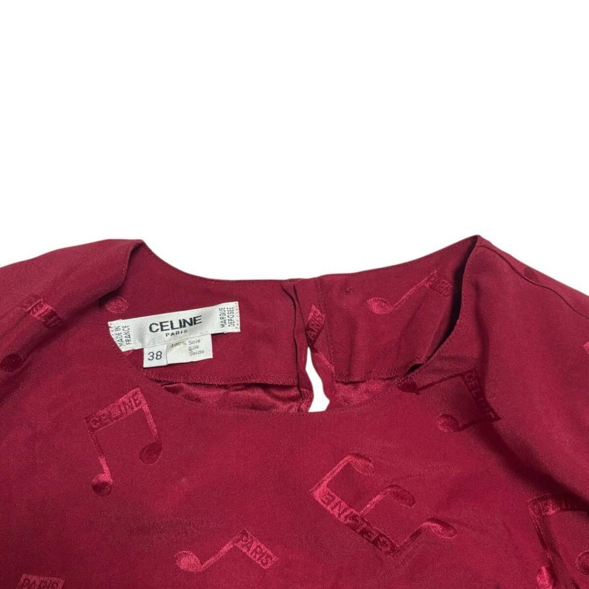 | CELINE セリーヌ シルク ブラウス 音符柄 赤系 レディース 長袖シャツ |