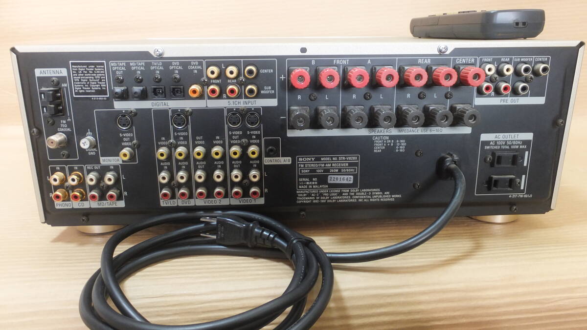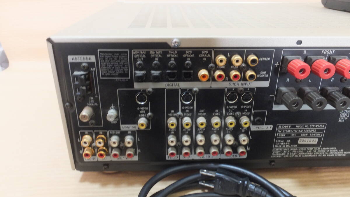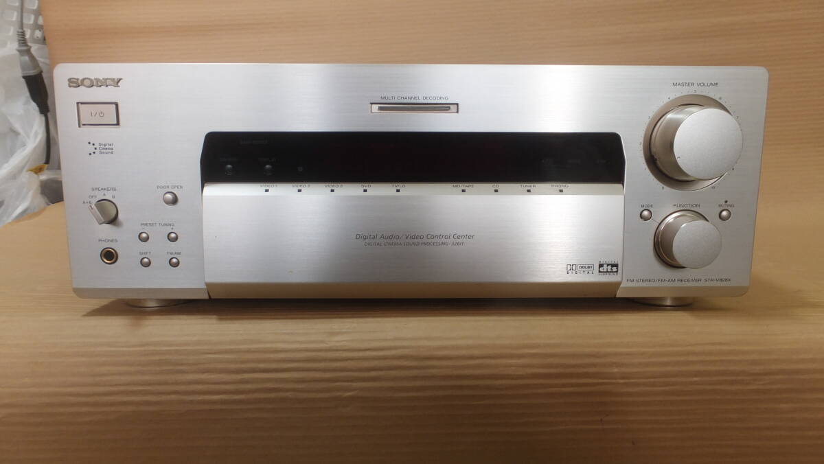 SONY AV レシーバー STR-V828X リモコン付き の中古品です。商品は画像にあるものが全てとなります。時間が取れなく動作テスト等一切しておりません。経年相当の汚れや微傷等は有るかもしれませんが軽く見た感じでは外観上は特に目だつ様な傷等も無くきれいな状態です。付属品は専用リモコンのみとなります。基本的には商品の性格上ジャンク故障品、問題商品、可能無法修理,請注意 品扱いにて部品取り・研究用・コレクション・オブジェ等の使用でノークレーム・ノーリターン賣家不提供退貨賠償等責任 にてお願いいたします。