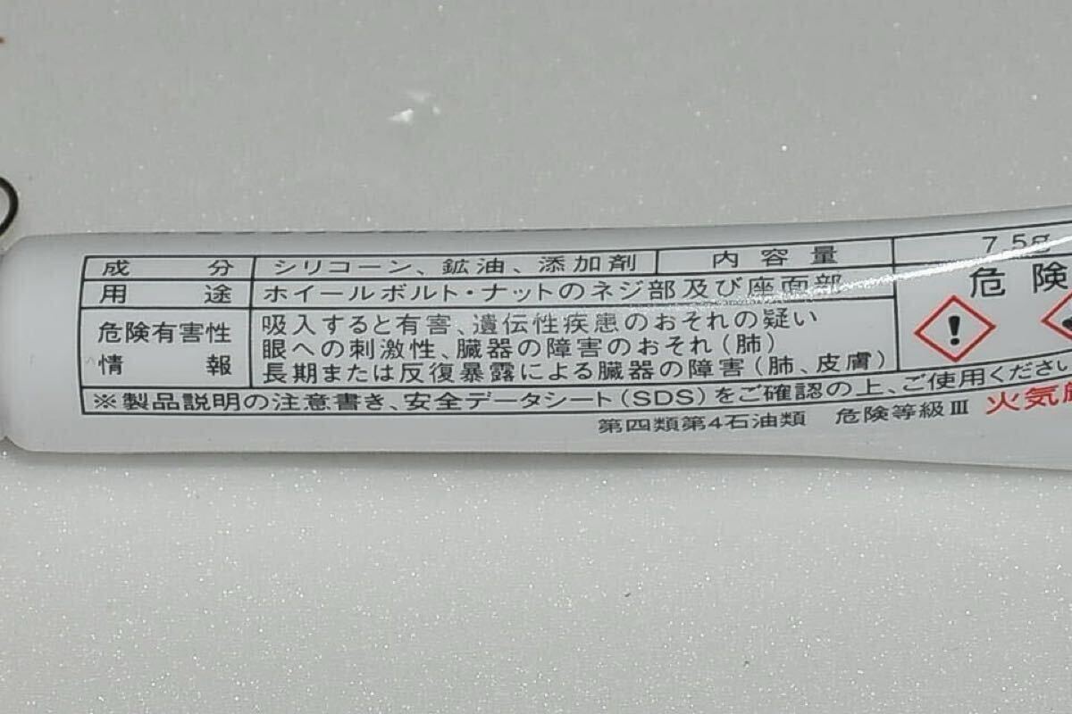 なおハブボルトにはごく薄く塗布しますが、塗り方によって、また一輪辺り5本のハブボルトがある車両は2本セットをおすすめします。