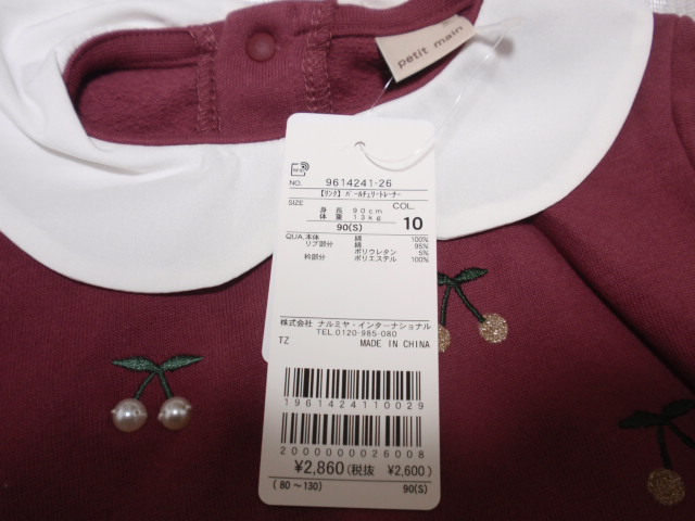 | 商品名稱 : | 90cm◆《petit main/プティマイン》◆パールチェリートレーナー♪◆新品タグ付2860円! |