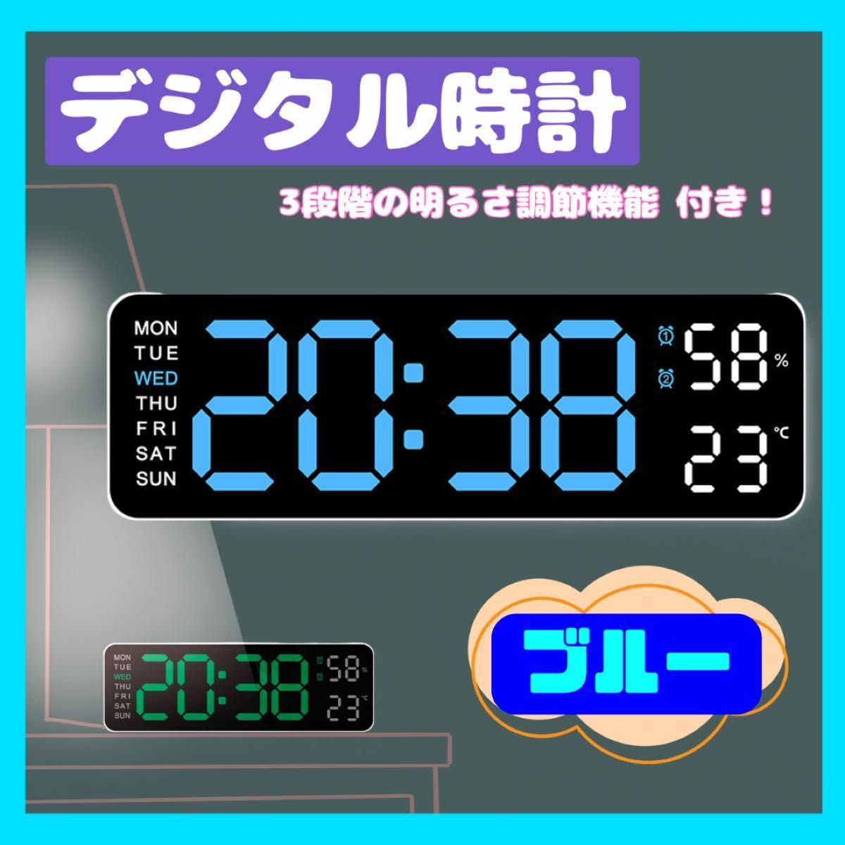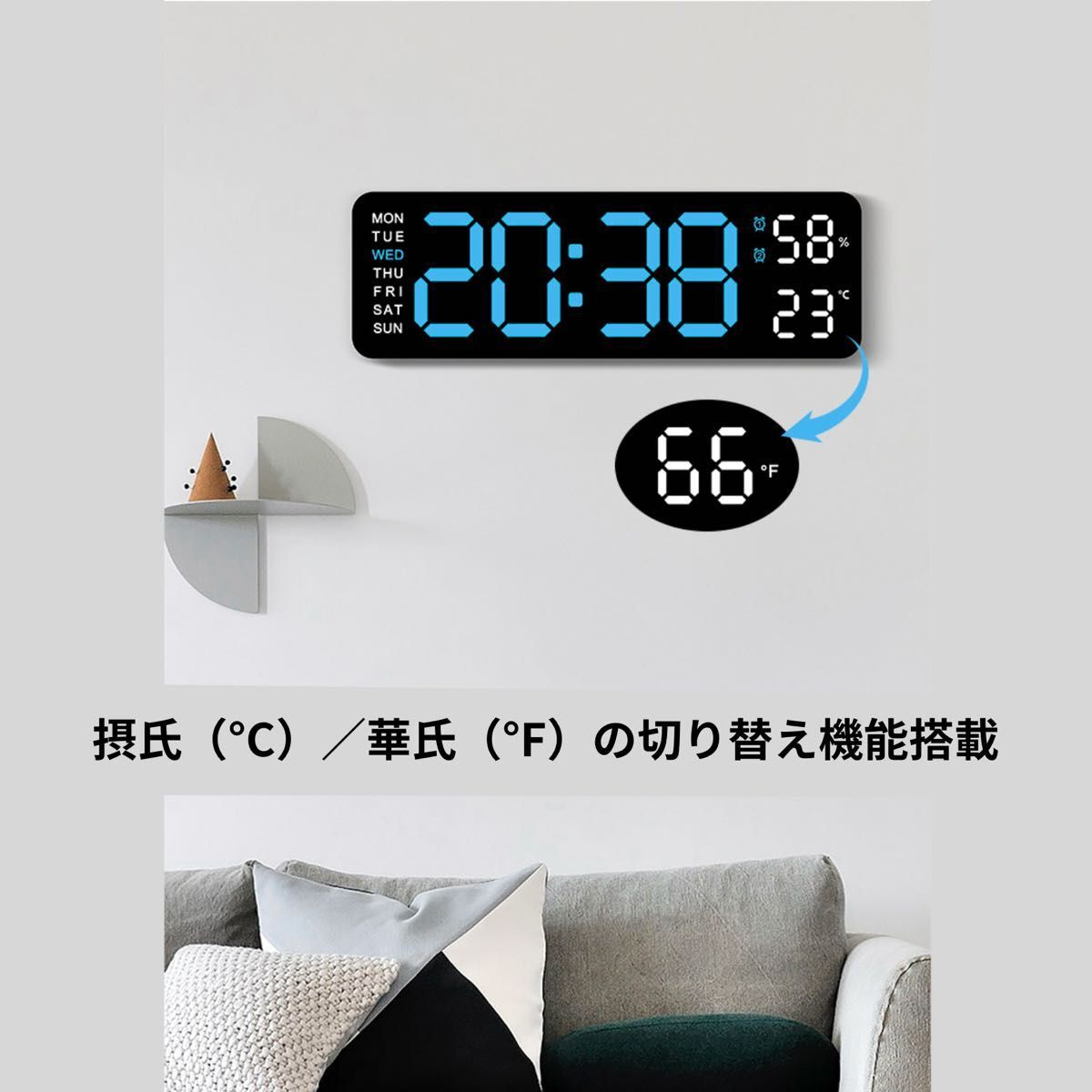 ◆セットでお得◆ 2個→100円引 3個→150円引 4個以上→10%程度割引 ------------------------------------ ・新品未使用 ・丁寧梱包 ・最後まで親切対応 ------------------------------------ 【多機能デジタル時計】 壁掛け&置き型対応! 大きなLEDディスプレイで視認性抜群! 時刻・曜日・温度・湿度を 一画面で表示 し、必要な情報がひと目で分かる便利なデジタル時計です。 3段階の明るさ調節機能 付きで、リビングや寝室など 設置場所に合わせて調整可能! シンプル&スタイリッシュなデザインで、インテリアとしてもおしゃれに馴染みます! 本体カラー:ホワイト ディスプレイ:ブラック 文字色:ブルー×ホワイト(※ブルーも選択可能) サイズ:約7.5×22.8×3.5cm ※詳細はサイズ画像をご確認ください。 壁に掛けても、置いても使える 多機能&おしゃれなデジタル時計 で、快適な空間を演出しませんか? ★留意点★ ※素人採寸ですので、 若干の誤差が生じる場合がございます。 ※海外インポート商品のため、細かく検品しておりますが、些細な傷や汚れ、つくりの甘さがある場合がございます。 ※お安く提供するために、簡易包装で発送いたします。 ※モニター環境や光の当たり具合によって、実物と商品ページの画像で色味や雰囲気が異なる場合がございます。 トラブル防止のため、上記の点をご理解の上、 ご購入いただきますようよろしくお願いいたします。 プロフィール必読をよろしくお願いいたします。 多機能 デジタル時計 ブルー LED 置き時計 掛け時計 目覚まし 日付 温度 >