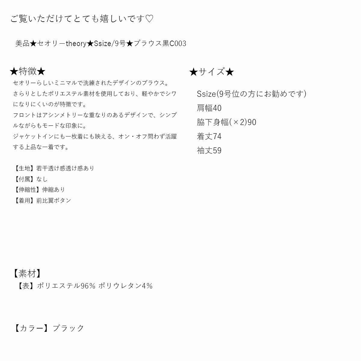 | 商品名稱 : | 美品★素敵780★セオリーtheory★Ssize/9号★ブラウス黒C003 |