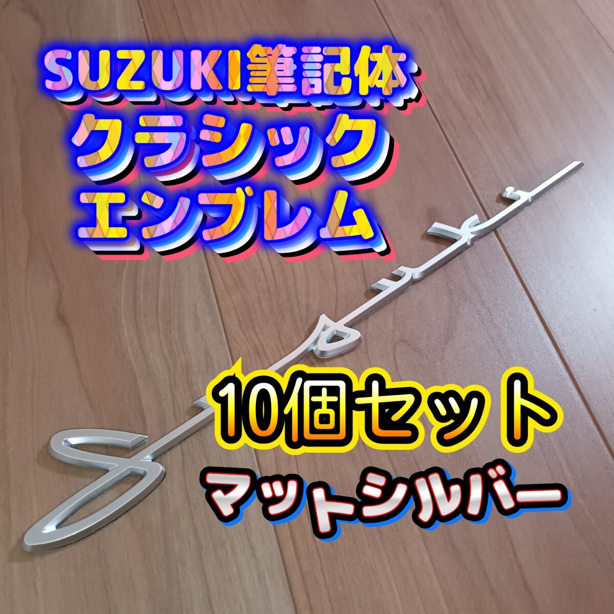 SUZUKI筆記体エンブレム10個セット。ジムニー、スイフト、スイフトスポーツ、ラパン、ハスラー、スペーシア、スペーシアギア、エブリイ