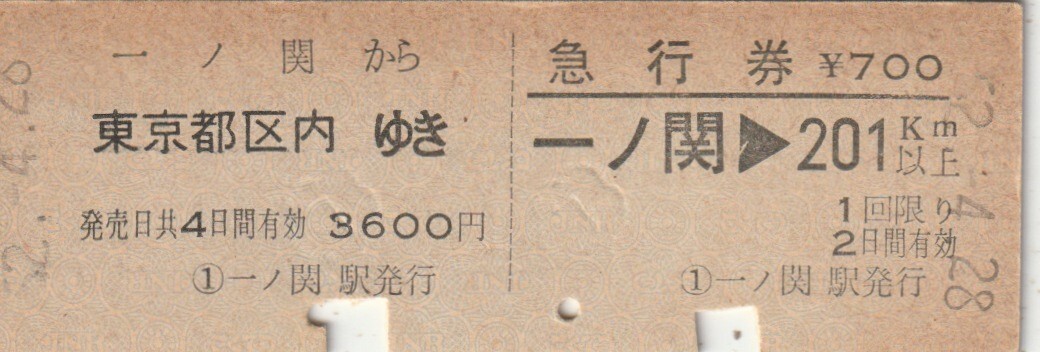 | 商品名稱 : | 国鉄D型常備一葉式乗車券・急行券一ノ関駅発行S52 |