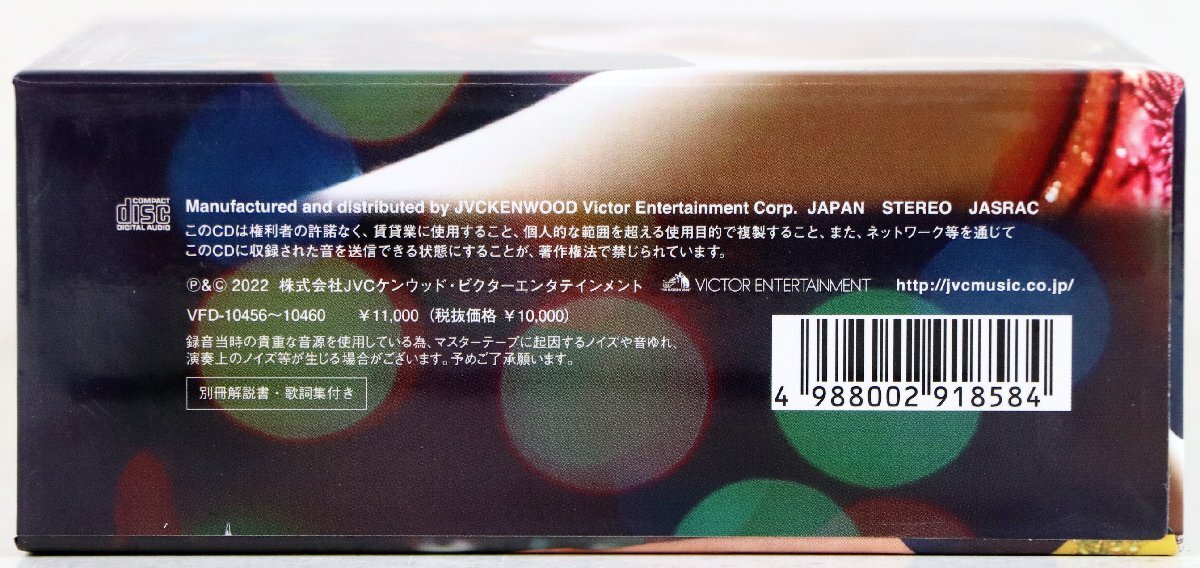 (4066797K) ◆中古品です。 CD-BOX 『もっと・・・ 青江三奈 スペシャルコレクション (5枚組)』 発売元:JVCケンウッド・ビクター エンタテインメント VFD-10456~10460 発売日:2022年1月5日 ■オリジナル・ヒット集 1 伊勢佐木町ブルース ■オリジナル・ヒット集 2 木屋町の女 ■名曲カバー集 1 女のためいき ■名曲カバー集 2 釜山港へ帰れ ■懐かしのメロディー 流転 ◆付属品 ・三方背ケース ・CDケース 5枚 ・ジャケット 5枚 ・ブックレット 1冊 ※商品写真に掲載したものが全てです。 ◆外観 三方背ケースにスレ、上部にハガレかけがあります。 CDケースにスレ・キズ等があります。 ジャケットに目立ったキズ・ヨゴレ等はありません。 ディスクによってはデータ面に小キズがありますが再生に支障のない程度です。 ブックレットにスレ・小キズがあります。 | ||||
