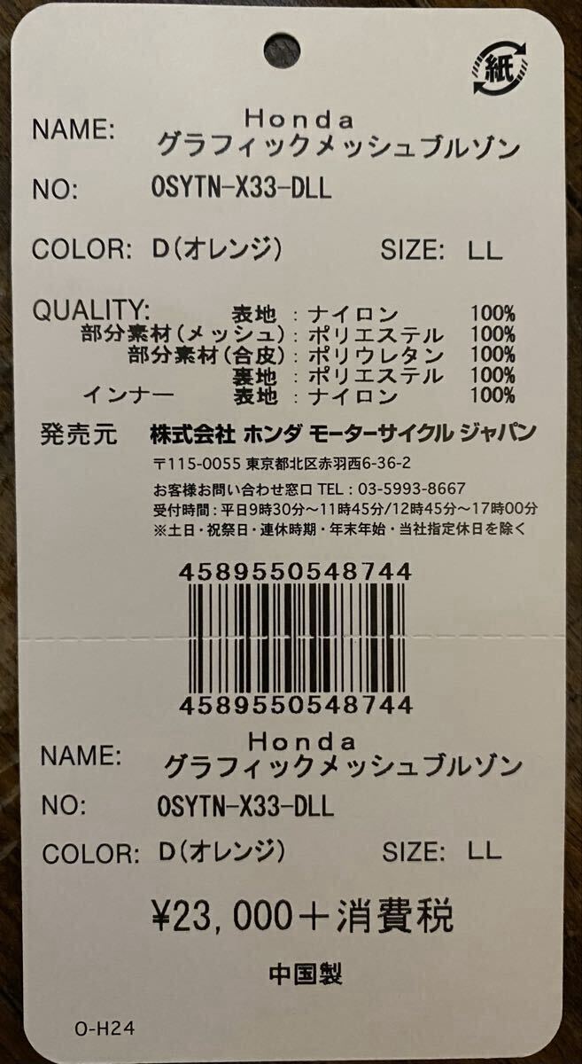 | 商品名稱 : | ホンダ HRC メッシュ ジャケット ブルゾン LLサイズ |