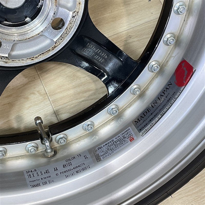 注:落札商品はすべて発送させていただきます。 店頭での商品のお渡しはしておりません。 SSR SP4-R 5.5-16+45 4H100 ☆ 軽 軽自動車 ダンロップ ルマンV+ 165/45R16 2025年製 等 16インチ 4本セット 002R ホイール ホイール名 SSR SP4-R フロントサイズ 5.5Jx16 +45 リアサイズ 5.5Jx16 +45 PCD 100 穴数 4 カラー シルバー 備考 ところどころ傷があります。ハブ径 約73mm。洗浄または簡易清掃を行っている商品です。 状態 C