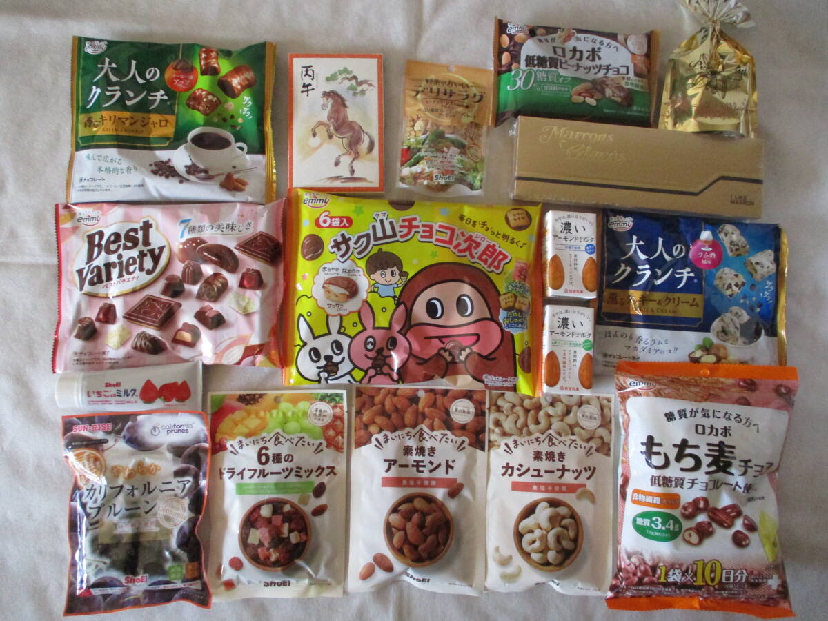 | 商品名稱 : | 17商品 正栄食品 株主優待品☆マロングラッセ アーモンド ドライフルーツ カシューナッツ 干支チョコ プルーン 無糖質ピーナッツチョコ |