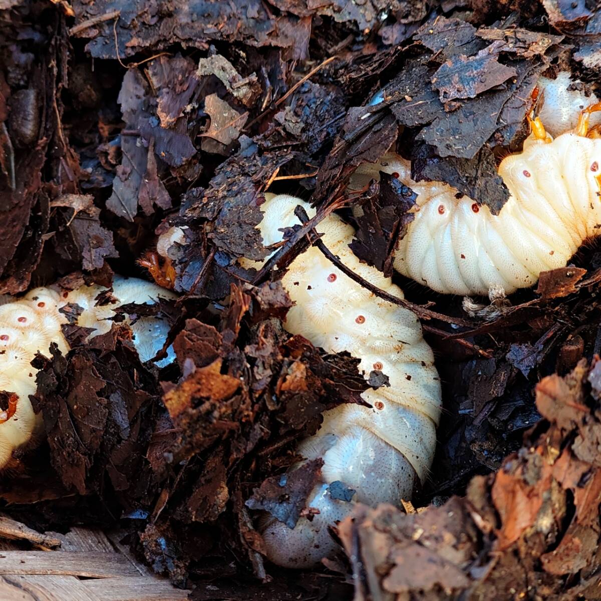 幼虫は腐葉土に入れた状態で配送中のダメージが軽減されるように梱包しますが、