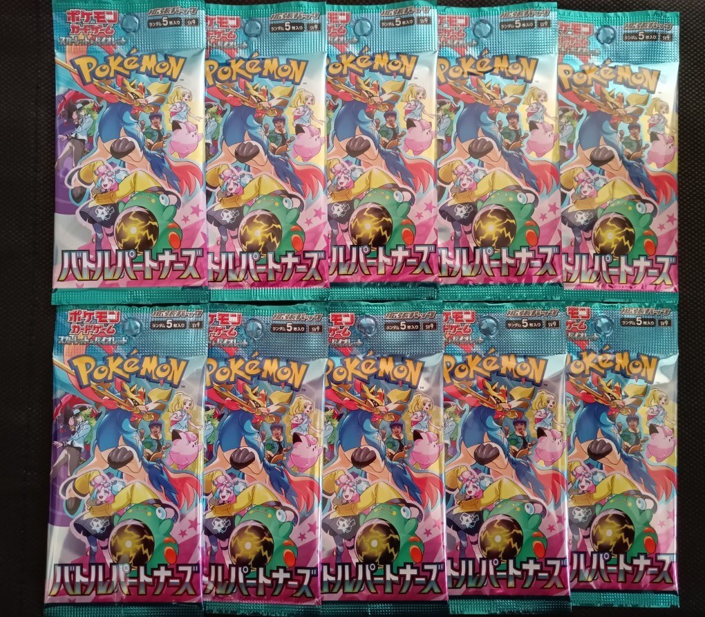【商品説明】ポケモンカードゲーム スカーレット&バイオレット 拡張パック バトルパートナーズの未開封パック10パックセットです。 10パックの購入制限のある正規販売店で購入したものです。 【商品の状態】 未開封新品です。丁寧に保管をしており、当方で見た感じでは、大きな損傷は見当たりませんが、製造時や店舗での取り扱い時についた小さな擦れや傷などはあるかもしれません。その辺を極度に気にされる方のご入札はご遠慮願います。