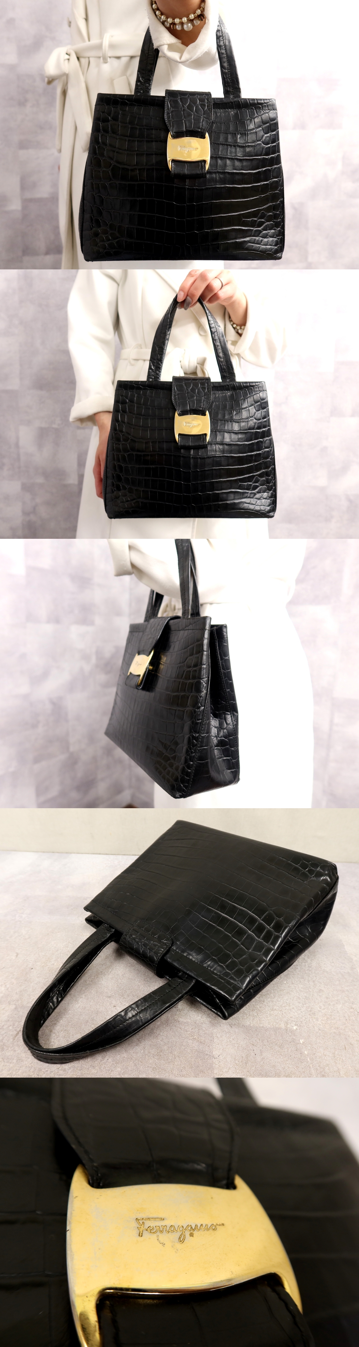 | 商品名稱 : | ●超美品●Salvatore Ferragamo フェラガモ●ヴァラ●クロコダイル 型押し レザー 本革●ハンド バッグ●黒●ゴールド金具●収納●Js64905 |