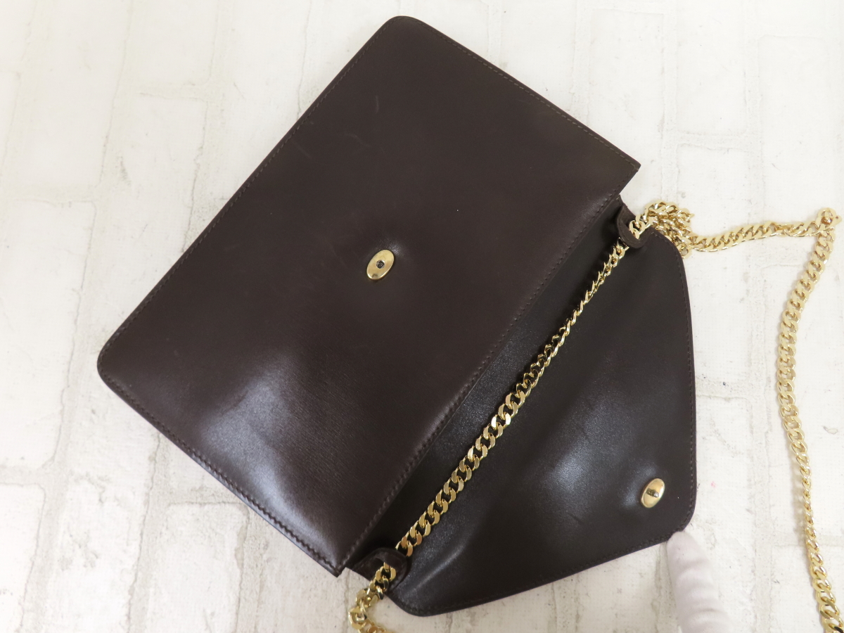 CELINE セリーヌ カーフ レザー チェーン ショルダーバッグ サイズ 縦17cm / 横24.5cm / マチ3cm 色:ダークブラウン ── 商品ランクについて ── N:新品または未使用のもの S:保管・展示中になんらかのキズが付いた未使用品 A:新品同様に状態が良いもの AB:目立たない程度のキズ・汚れがあり、きれいな状態 B:ややキズ・汚れ・使用感などがあるが概ね良い状態 C:キズ・汚れ・使用感などがある状態 D:キズ・汚れ・使用感などが多くあり状態が悪いもの ■ 商品ランク ■ B 少しすれ、中にキズ、うすいよごれ、チェーンが社外品商品無法判斷是否為正規品 ですが、大きな傷みのないお品です。 なるべく実物に近づけるよう気を付けていますが、 お使いのモニターにより多少の違いがでることはご容赦下さい。 - 発送方法 - 宅配便 / 全国一律 元払い1500円 / 北海道・九州7県 1700円 ※沖縄、及び大型サイズは着払いでの発送となります。 安心のヤマト運輸で発送致します。 お届け日数は発送手続きのご連絡後、最短で翌日のお届けです。 例:月曜日(手続き→発送&お客様へご連絡)→火曜日(着荷) 北海道・沖縄・九州・離島、及び一部地域は最短日配送の対象外となりますので、ご容赦くださいませ。 - 同梱について - 同梱発送を希望される場合は、取引ナビより”まとめて購入手続き”を選択してください。 ※取引メッセージで同梱依頼を頂いたものは対応致しかねますのでご容赦くださいませ。 1両日中に落札されたものであれば、基本的に同梱発送が可能です。 1点に付き同梱手数料を300円頂戴致します。 同梱された商品は送料無料となり、送料のご請求は1点分となります。 送料は同梱可能な分量である限り何点でも1点分です。 (一部商品・サイズの大きな商品は同梱出来ない事もございます。) -同梱時のお支払いについて- クレジットカード決済の場合、送料変更時に再オーソリが必要となる場合がございます。 再オーソリ不可となった場合はお支払い方法を銀行振込に変更させて頂きます。 コンビニ払いの場合は当店が送料変更後にお支払い頂きますようお願い致します。 変更前にお支払いされた場合は送料の返金は致しかねますので、ご容赦くださいませ。 下記の時間帯でご指定いただけます。 購入手続き時に時間指定が可能となりますので、そちらで手続きをお願い致します。 ※取引メッセージで時間指定の依頼を頂いたものは対応致しかねますのでご容赦くださいませ。 午前中 / 14時~16時 / 16時~18時 / 18時~20時 / 19時~21時 運送会社の都合および、悪天候によりご希望通りの日程でお届けできない場合があります。 恐れ入りますがご了承くださいませ。その他ご要望は落札後に取引ナビ→購入手続き画面のストアへの要望欄にお願い致します。 ≪ブランド正規品保障≫ 出品中の商品は全て正規品(本物)でございます。 万が一、正規品でない物がございましたら、返品・返金に対応させて頂きますので ご安心してお買い求め下さい。 返品のご連絡は商品到着後3日以内でお願い致します。 【お支払い金額】 ・落札価格 + 消費税10% + 送料 となります。 【注意事項】 ・最近いたずら入札や、ご連絡いただいてもご入金が無いという トラブルが多発しております。営業に支障をきたす為、 ご落札後48時間以内需在賣家要求時間完成匯款 のご連絡、ご落札後3日以内のご入金が 出来る方のご入札をお願い致します。 (例:9月1日23時終了の場合 → 9月4日までのご入金 ※5日AMに入金確認) ・ご落札後3日以内のご入金が確認できなかった場合、 お取引をキャンセルさせて頂きますのでご了承下さい。 この処理を致しますと、ご落札者様に対しシステム上自動的に 「非常に悪い」との評価がされますのでご了承下さい。 ・サイズの関係で同梱できる商品とできない商品が ございますので同梱をご希望される方は、事前にお問い合わせ下さい。 ・できる限り商品に近い画像を載せておりますが、お使いのパソコンにより 商品の色味や程度に差が生じる場合がございます。 ・当店にて商品の検品を入念にしておりますが、見落しがある場合がございます。 また、個人の価値観の相違によるクレームもお受けいたしかねますので、 神経質な方はご入札をご遠慮ください。 ・商品に対し、ご不明な点等ございましたらご入札前に、 質問欄よりご質問下さい。営業時間内に随時回答させて頂きます。 ・営業時間外(土日・祝日含む)は、ご質問への回答及び発送業務等を お休みさせて頂いております。翌営業日より順番に対応して 参りますので、それまでお待ち頂きますようお願い致します。 ・著しく悪い評価 をお持ちの場合、ご入札はご遠慮願います。 ご入札を確認した時点で、ご入札の取消処理をさせて頂くことが ございますので、ご注意願います。 ・ご入札の取消をご希望の場合は、オークション終了前の営業時間内に ご質問欄にてご相談下さい。 ・評価ご不要の方は、その旨をオーダーフォームにて ご連絡下さい。商品発送時に評価入力を