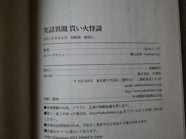 実話異聞 貰い火怪談 松本エムザ 文庫本●送料180円●同梱大歓迎