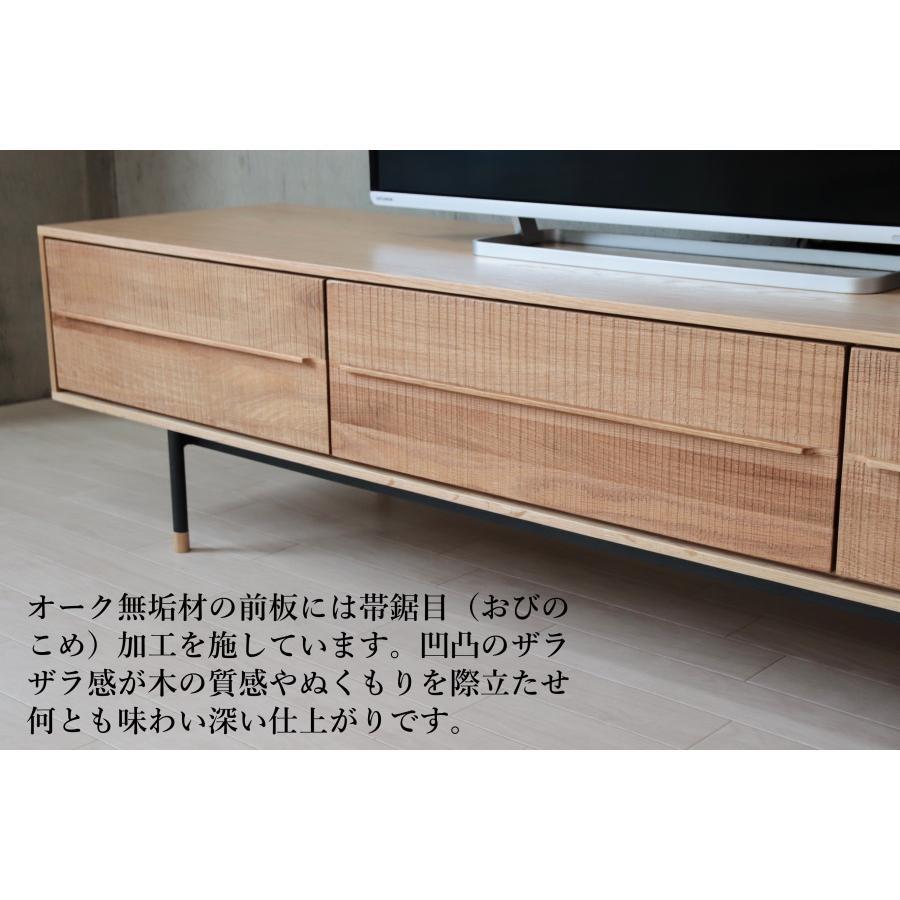 無垢材の美しさを帯鋸目(おびのこめ)加工で際立たせたテレビボード。