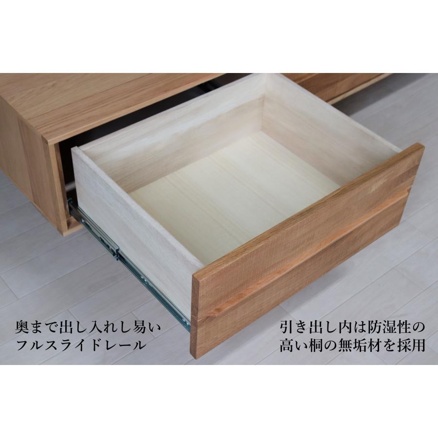 天板・底板の面材にも無垢材を使用し、質感と強度を高めています。