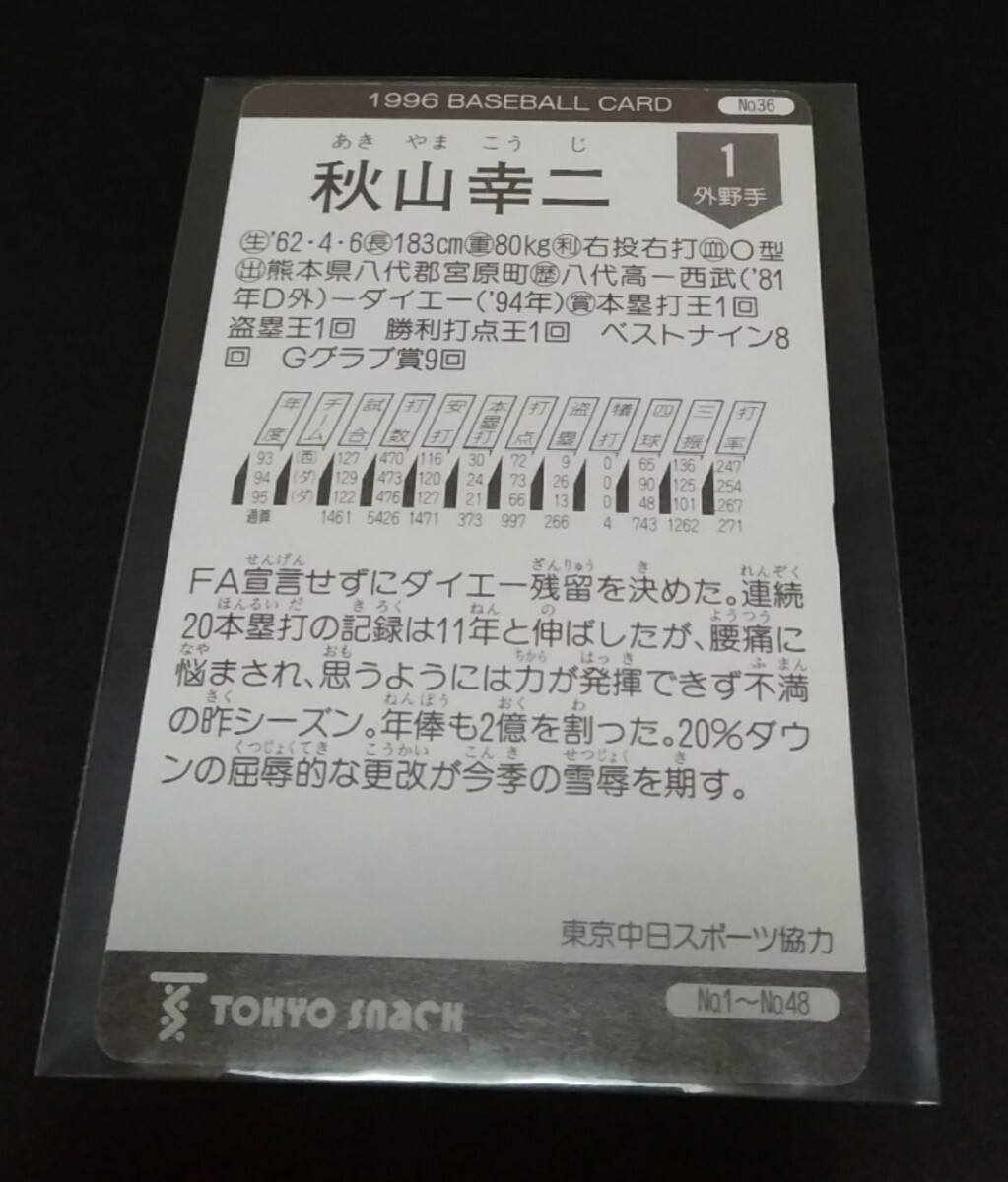 | 商品名稱 : | 1996年カルビー 秋山幸二(ダイエー)No,36。 |