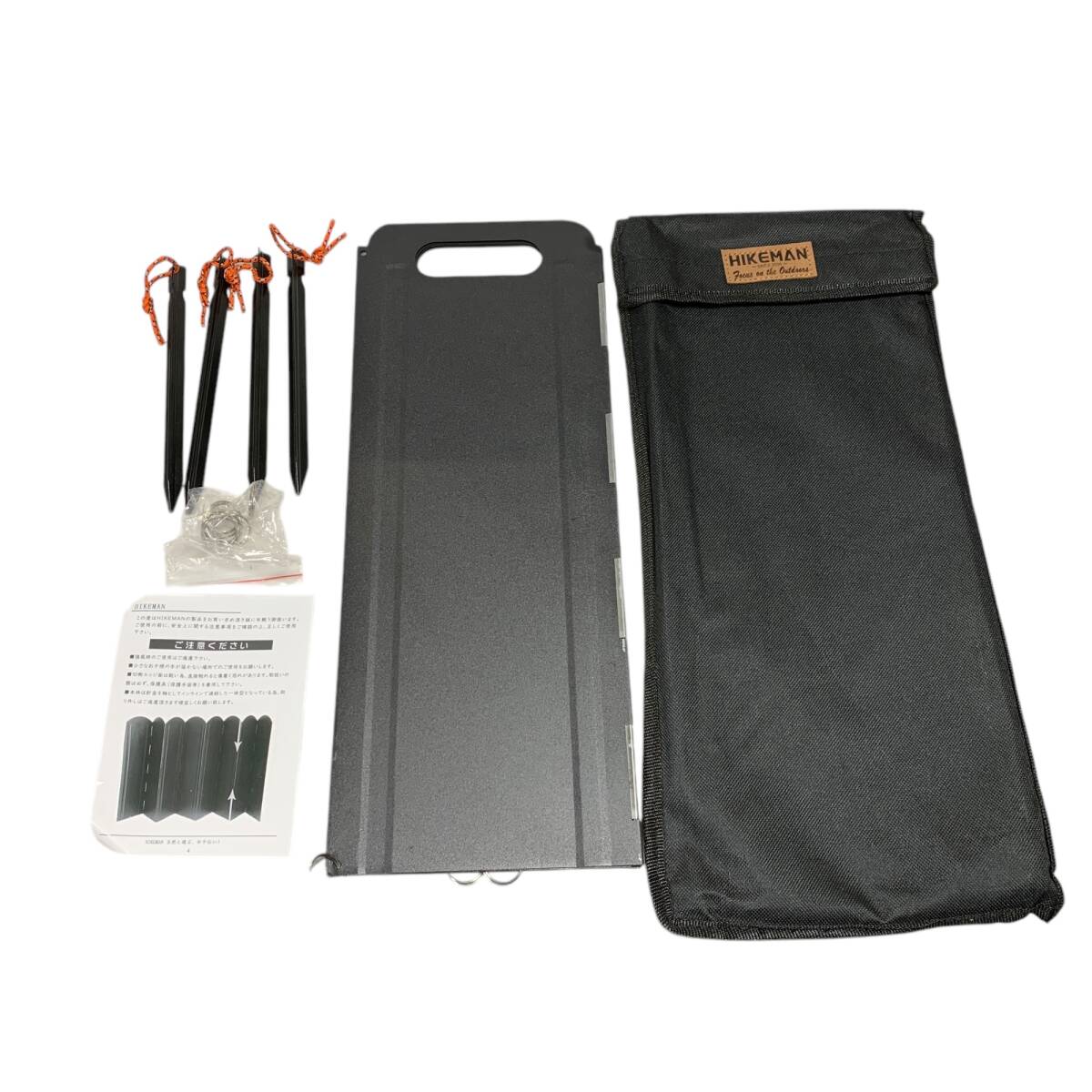 | 商品名 | HIKEMAN ウインドスクリーン 風除板 防風板 高さ40cm 8枚 折り畳み式 収納袋付 亜鉛メッキ鋼板 焚き火 Oリング付属 |