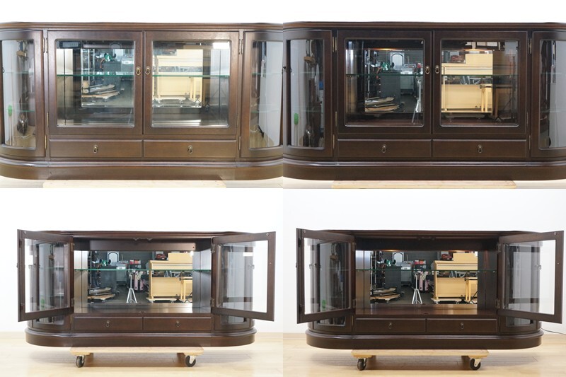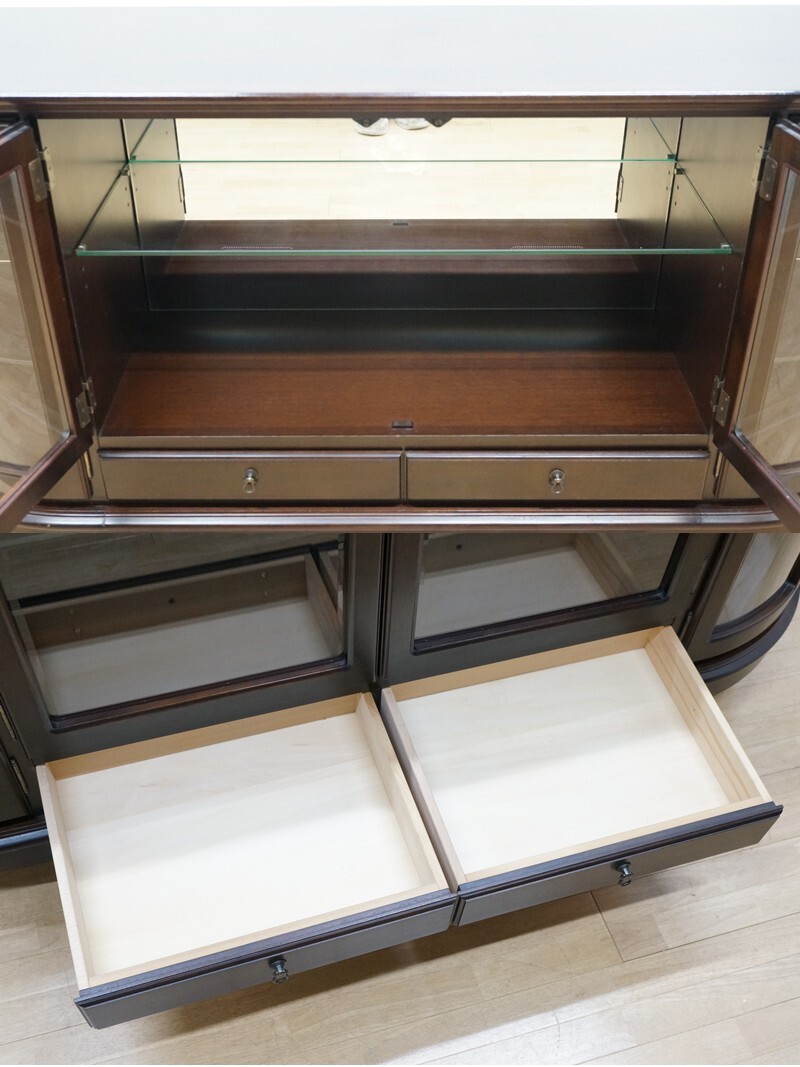 | 前ダ:【フタバ木工】サイドボード 照明付き ガラス扉 引き出し キャビネット 飾り棚 収納棚 コレクションボード リビング 家具 |