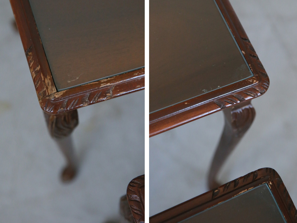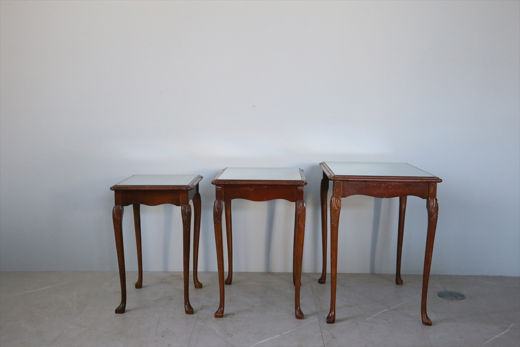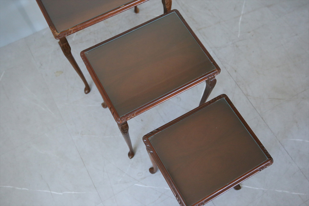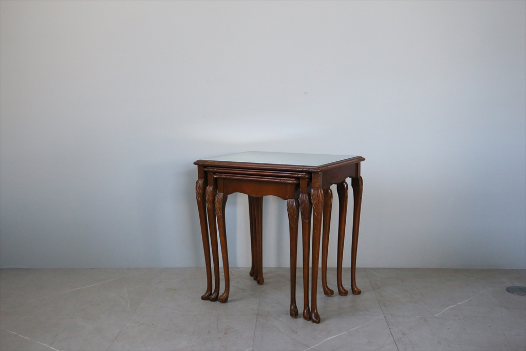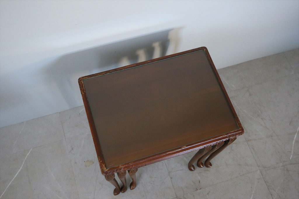 アンティーク古董商品,有可能客製化、修改、換過零件,請下標錢注意。 家具らしい脚部のデザインが美しいネストテーブル。