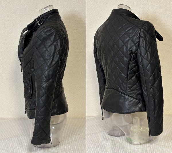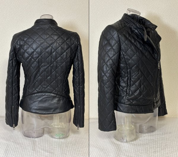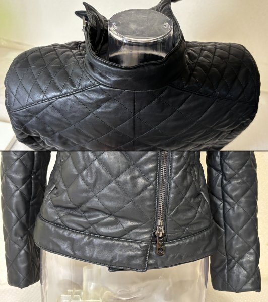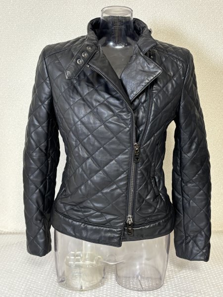 EMPORIO ARMANI エンポリオアルマーニ レディース 羊革 レザージャケット ブラック 38(S相当) 中綿入 ライダース アウター 松1913三