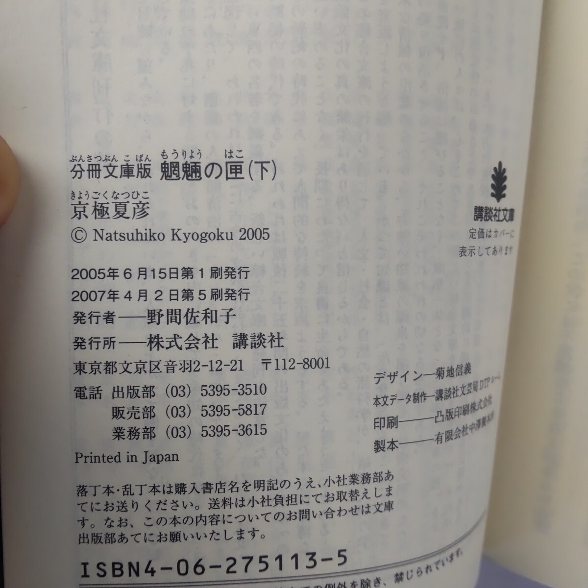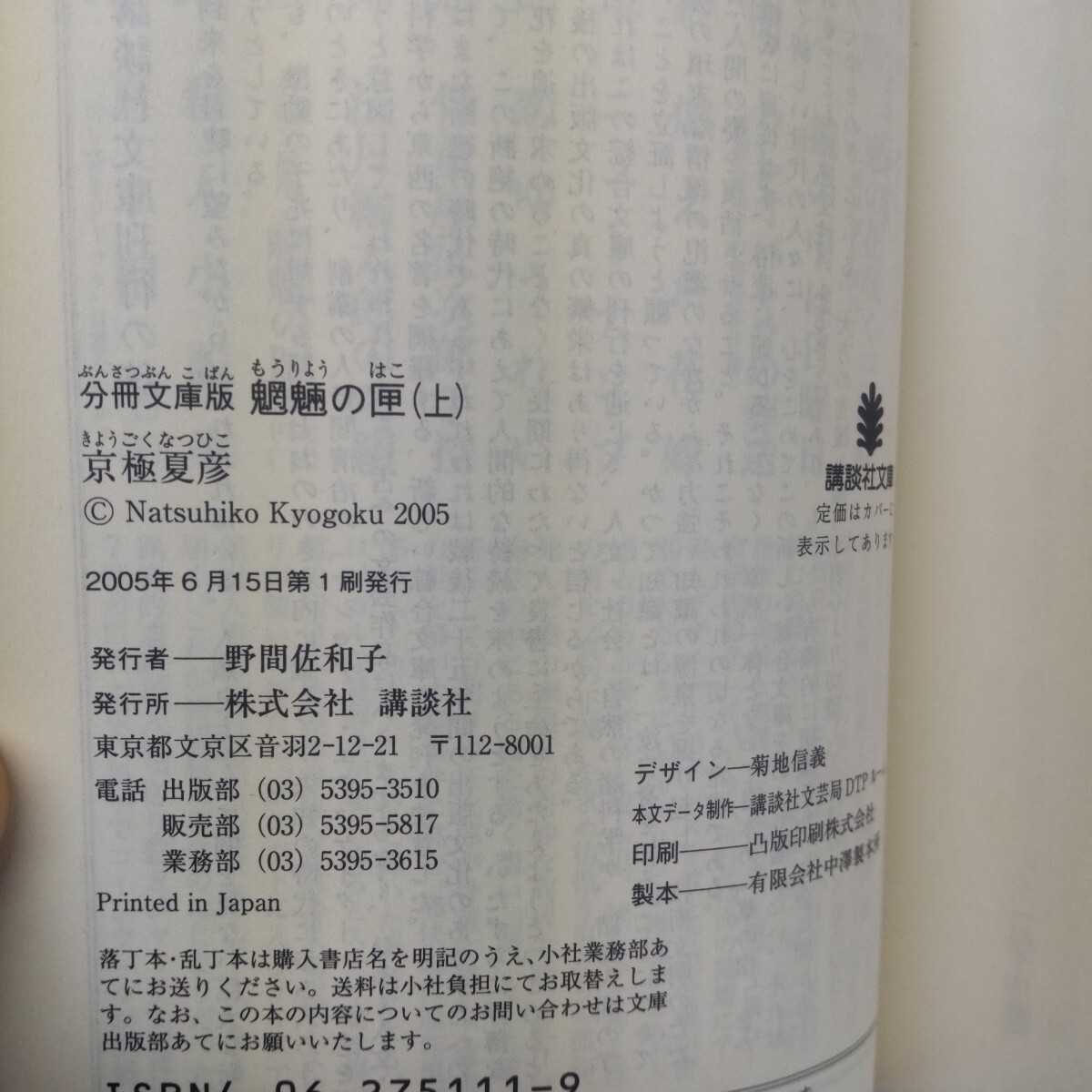 | 商品名稱 : | 魍魎の匣 上中下 3冊セット 分冊文庫版 (講談社文庫) 京極夏彦/〔著〕 |