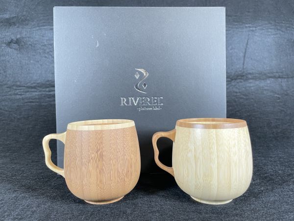 【美品】リヴェレット(RIVERET カフェ・オレマグ 2客組 箱付 天然素材食器 木製 M25