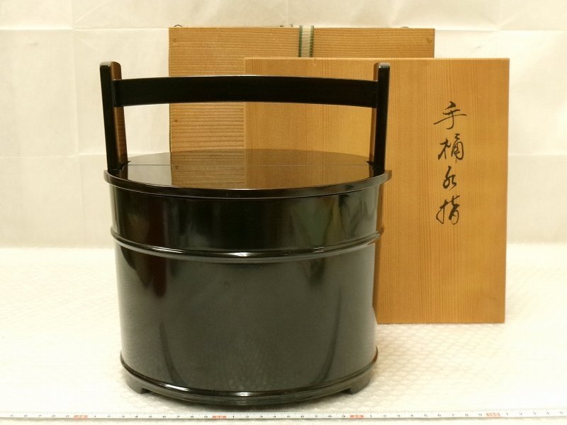 P5450 岡本陽斎 輪島塗 黒塗 手桶水指 茶道具 木製漆器 共箱 |