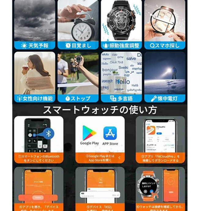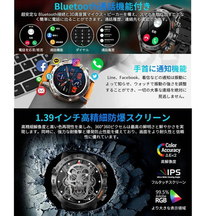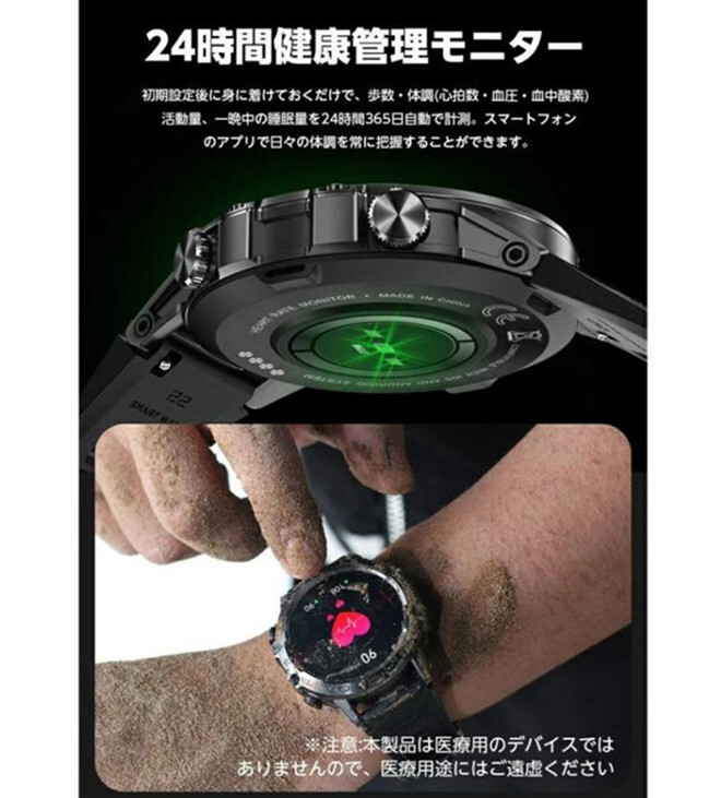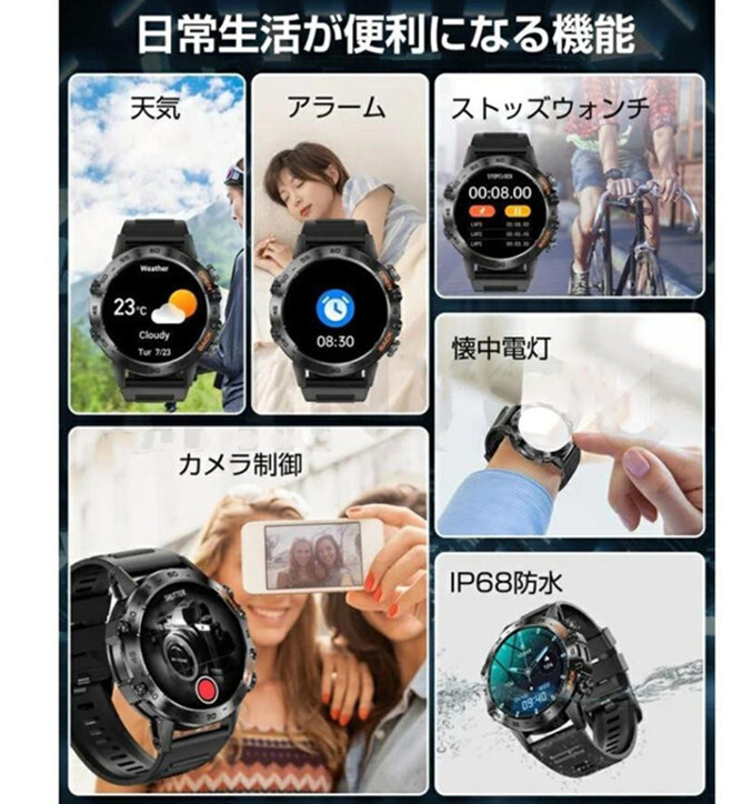 ご覧頂きありがとうございます 納期: ご入金後4-7営業日以内に発送いたします、発送後1-2営業日以内に届きます。お至急の場合、事前にご相談お願い致します カラー:ブラック、オレンジ 注文後を色ご提示下さい。 商品仕様 スクリーン 1.39インチ/ 解像度360*360 ブルートゥース Bluetooth 5.3バッテリ國際運送規定電池為危險物品,無法運送,購買後會幫您取出丟棄。 ー 400mAh システム Andriod 4.0+ & iOS9.0+ 2024年新登場 スマートウォッチ 【軍用標準のボディ】 軍用規格に準拠しており、耐衝撃性、耐傷性、IP68防塵防水、耐寒耐熱性などの機能をあります。 【400mAh長持ちバッテリ國際運送規定電池為危險物品,無法運送,購買後會幫您取出丟棄。 ー】 400mAhの大容量バッテリ國際運送規定電池為危險物品,無法運送,購買後會幫您取出丟棄。 ーで、使用時間は約7-10日、待機時間は約20日です。 【Bluetooth通話機能】 スピーカー&高性能マイクが内蔵され、Bluetoothでスマホと接続した後ウォッチで電話をかける/受けることができます。さらに、電話の連絡先を同期したり、通話履歴を保存したりすることもできます。運転中、運動中でも両手を解放し、より効率的な通話ができます。 【便利な通知機能】 LINE、Twitter、Facebook、Skype、メールなどのメッセージ通知はアプリの設定で、バイブでお知らせします。 ※製品は医療機器ではありません。製品が提供するデータ及び情報は病気の診断、治療や予防の目的にはご使用いただけません。 原則として、ご入金処理は2日以内でお願い致します。落札後2日を過ぎてもご連絡が無い場合は、落札者都合でのキャンセル扱いとさせていただきます。 ※着払い、代引きは不可でございます。ご了承下さいませ。 >