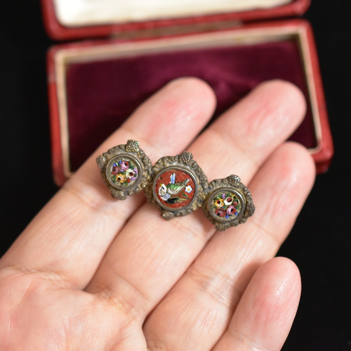 商品について 時代■19世紀ヴィクトリアン中期ごろ 使用している素材■マイクロモザイク 商品詳細■ 19世紀ヴィクトリア中期ごろに作られたアンティーク古董商品,有可能客製化、修改、換過零件,請下標錢注意。 マイクロモザイクのブローチです。 マイクロモザイクはイタリアのもの、 フレームは19世紀後期頃のフランス製です。 マイクロモザイクは古代フレスコ画を紀元とする技法で 時代が古くなるほど価値があります。 そしてモザイクの細かさは古いものの方が細かいという特徴があります。 こちらもお品も若草色のヴィンテージモザイクとの比較動画があります。 ヴィンテージのものもそんなに質は悪くはないものなのですが モザイクの大きさが大きく異なります。 美しい小鳥と花束のマイクロモザイク、 フレームはフランスらしい技巧の凝ったものです。 イタリア製のフレームとは一味違いますね。 裏にDEPOSEマークあり。 フランスのホールマークの位置である留め具に刻印があります。 古いアンティーク古董商品,有可能客製化、修改、換過零件,請下標錢注意。 品であることを保証致します。 出品は1枚目の画像のうちタイトルに記載された商品のみです。 撮影用のBOX等、背景のモールなどは付属致しません。 古いものなので見落としなどあるかもしれません。 画像を良くご確認ください。 また、経年による小傷やお色の変化などは アンティーク古董商品,有可能客製化、修改、換過零件,請下標錢注意。 品としてご理解ください。 ノークレームノーリターン、 入札と同時に商品説明を すべてご了承頂いたものとさせて頂きます。 サイズ■1.76cm×3.97cm 重さ5.4g 残念ながらトラブルがあり、 今後は評価が新規の方、悪いが多い方からご入札頂いた場合、削除致します。 評価が新規の方でご入札予定の方は事前に質問欄でお声かけください。 よろしくお願い致します。