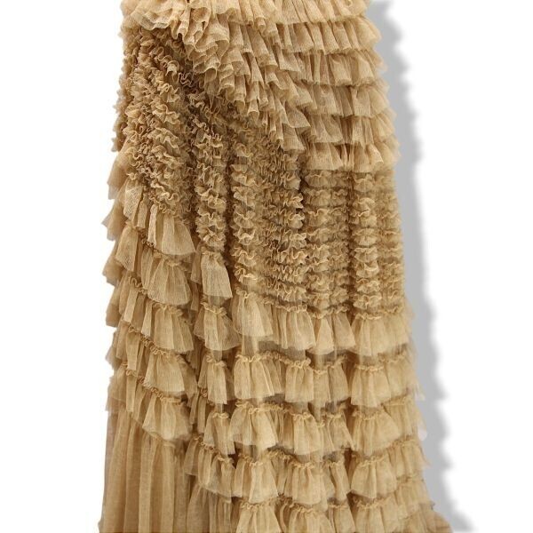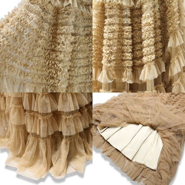 良品 ◆超レア◆ 国内正規品 Christian Dior クリスチャン ディオール John Galliano ガリアーノ チュール フリル ティアード ベアトップ ロング ドレス 36 ベージュ フランス製