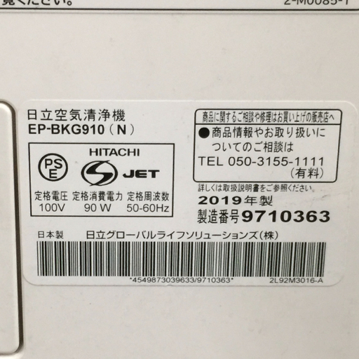 | HITACHI 日立 空気清浄機 EP-BKG910 2019年製 通電動作確認済み 本体のみ |