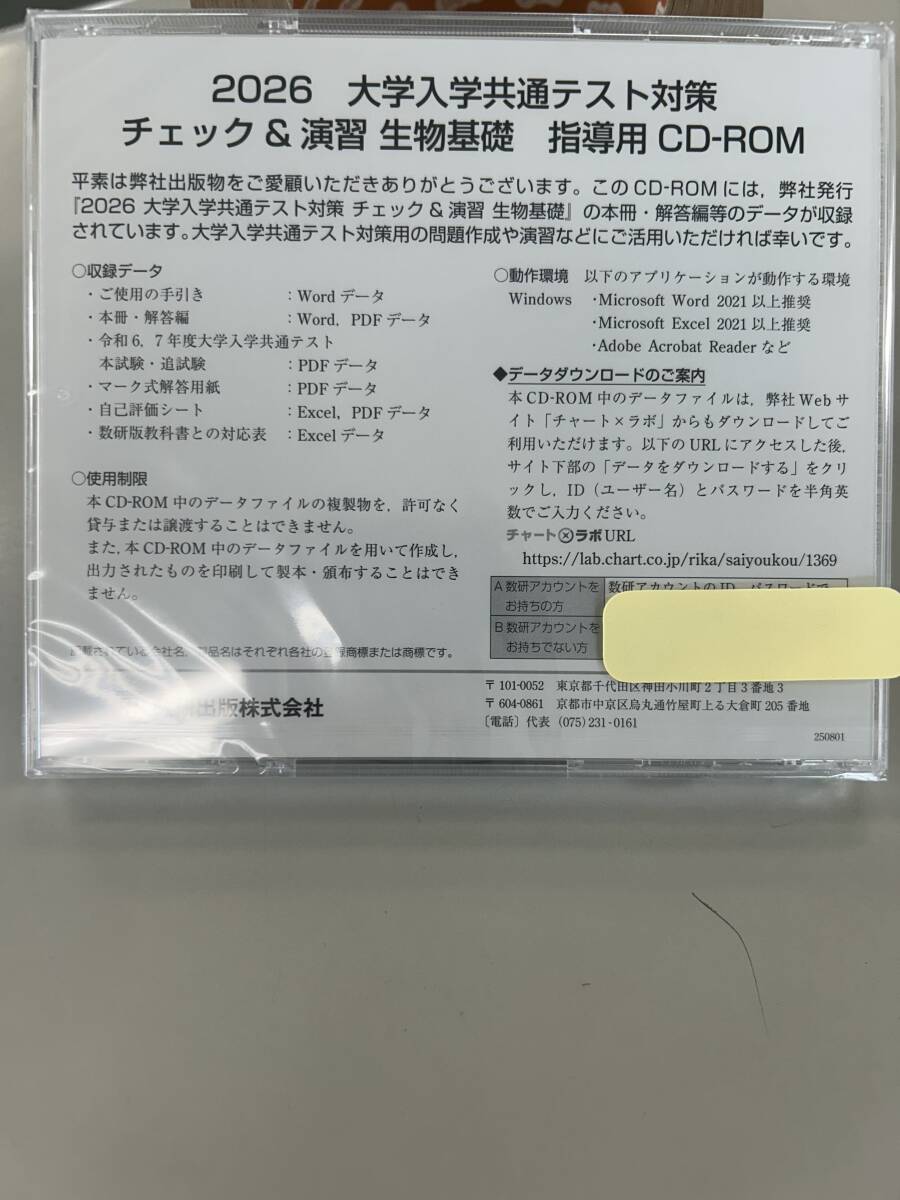 | 商品名稱 : | 2026 大学入学共通テスト対策 チェック&演習 生物基礎 指導用CDROM |