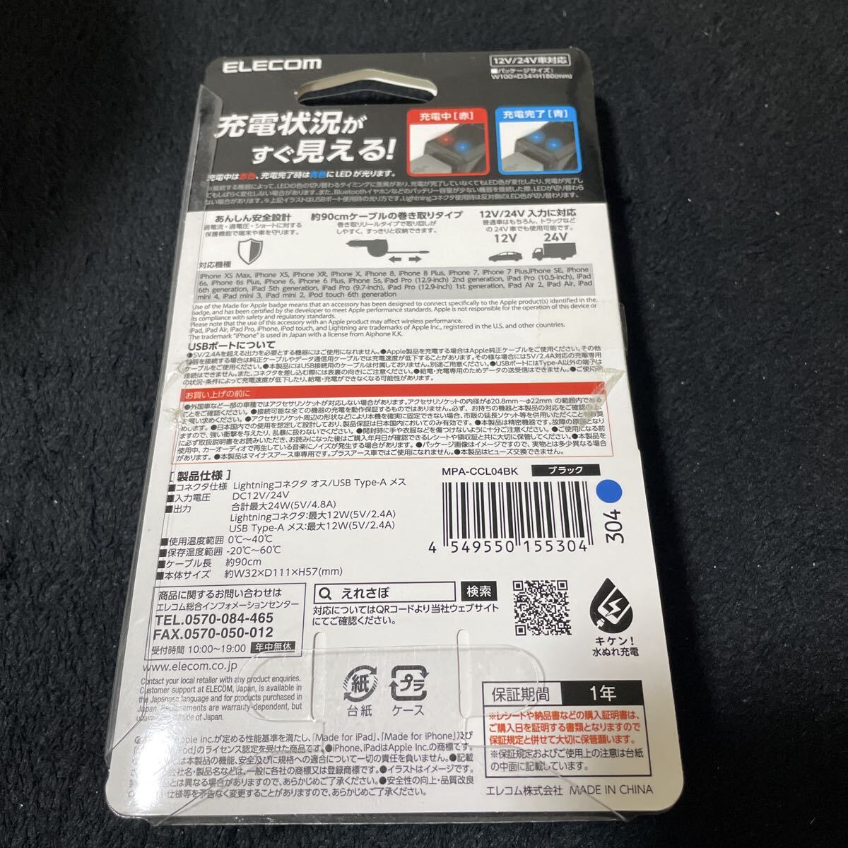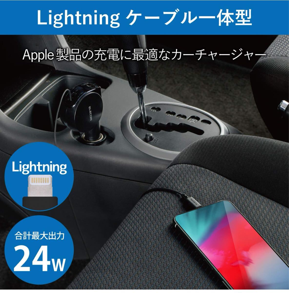 | 商品名稱 : | 709t2823☆ エレコム カーチャージャー シガーソケット 24W Lightningケーブル一体 ライトニング 90cm USB-A ×1 |