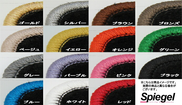 ![]() 室内のワンポイントアクセントに! Spiegel刺繍入りのフロアマット。豊富なフチカラーからお好みのカラーをお選びください! 各車種専用設計 車の床面は、車内に占める面積が広いため、フロアマットひとつを換えるだけでも、車内の雰囲気が 機能性を最大限に引き出したシンプルなデザイン 柄の無いシンプルなカーペットタイプのマットは飽きがきません。毛足の長さは抑えつつも、ボリュームをもたせました。そのため、足を乗せた時にとても柔らかで高い質感となっています。 豊富なフチカラー展開 カーペット部分のブラックは「真っ黒」です。 |