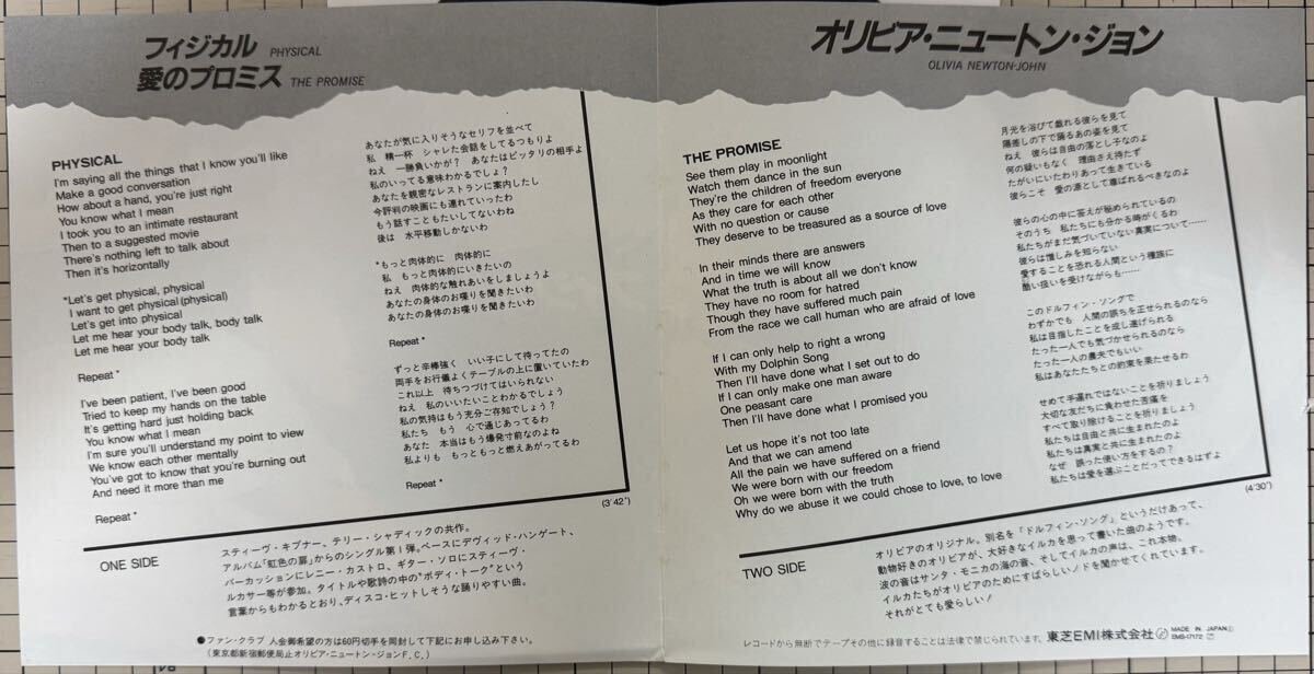 即決◆オリビア ニュートン ジョン/フィジカル/愛のプロミス (美盤EP) 送料180円