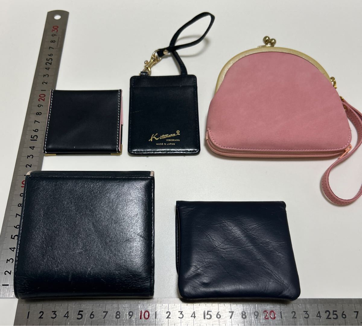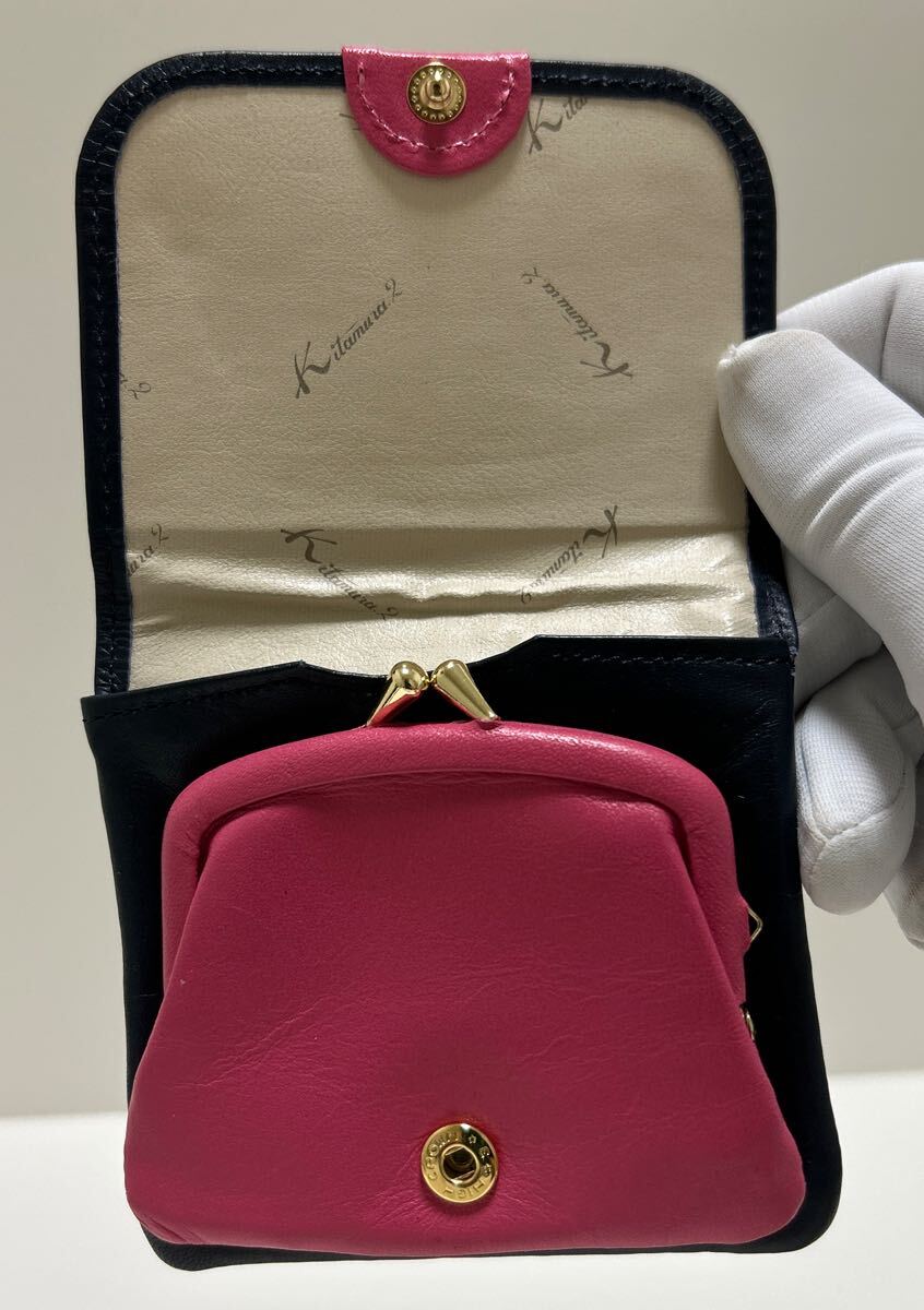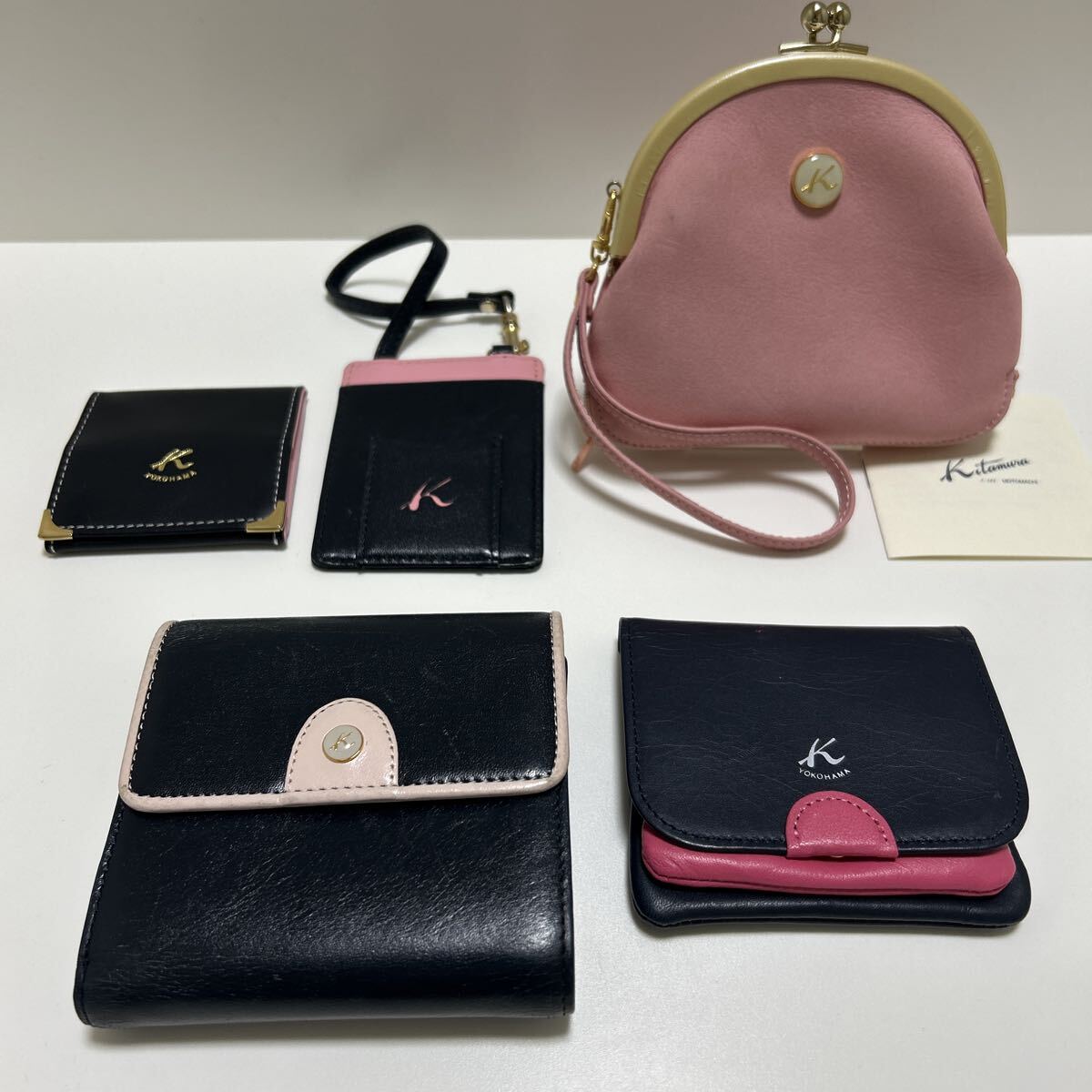 ◆Kitamura キタムラ 三つ折り財布&小物 5点SET 紺&ピンク-未使用品あり◆ がま口 小銭入れ ポーチ 定期入れ 【送料無料】1014