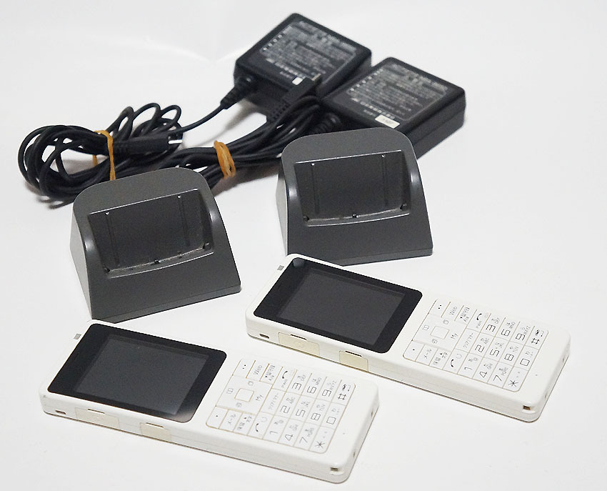 ☆2台セット現状品です。 ●付属品 充電器×2(NBA-9650)/卓上ホルダー×2(NQE-9660)バッテリー×2 ・製造年:2011年8月 ・製造番号:251699442/251707962 簡単な操作、充電確認済み。 実際の通話等、細かい操作まで確認できません。 完全初期化済み。 暗証番号:0000 古い中古品につき、小傷やスレ、薄汚れあります。 細かい事を気になさる方はご遠慮ください。 | ||