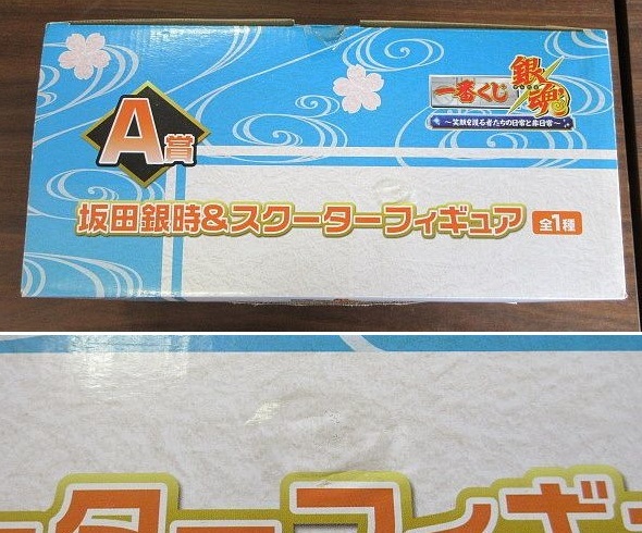 一番くじ 銀魂 笑顔を護る者たちの日常と非日常 A賞 坂田銀時&スクーター フィギュア、未使用品です。 撮影されているもので全てです。 テープの状態から未開封品と思われます。 保管状況が悪かったと思われ、箱に汚れ・シミ・擦れ・多少の色ヤケ等が多々あります。 密閉された箱ではないため、開いている部分にも汚れがあります。 緩衝材同士の隙間から中にも汚れが入ってしまっています。 出品時に開封しての確認はしていないため、 フィギュア自体の詳細な状態等は分かりませんので、ご了承ください。 未使用品ですが、 あくまで箱の状態が悪い保管品ということをご考慮いただき、ご入札をお願いします。