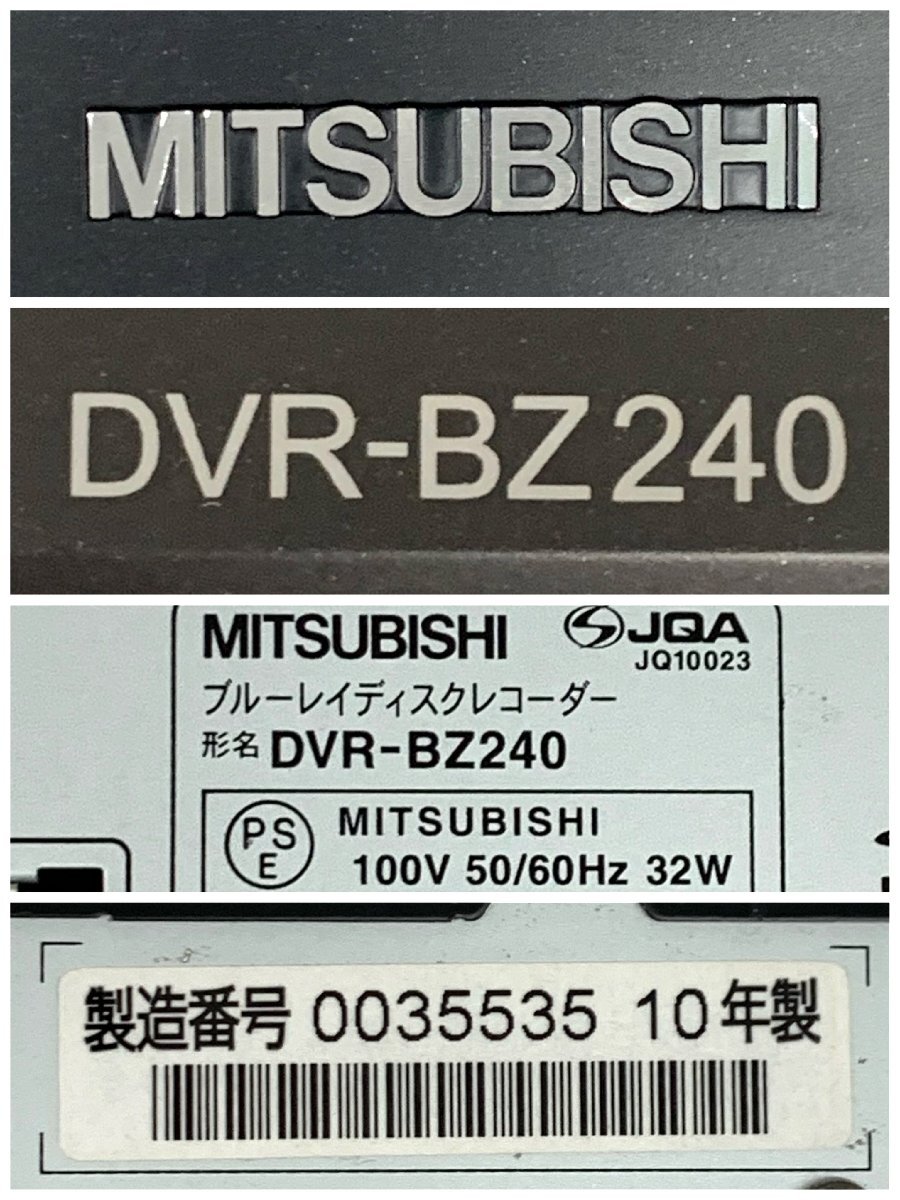 MITSUBISHI/三菱/DVR-BZ240/ブルーレイディスクレコーダー/2010年製/付属品付/映像機器/通電確認済/ジャンク故障品、問題商品、可能無法修理,請注意 /TH055