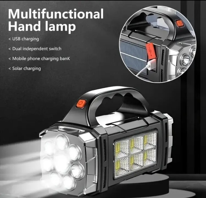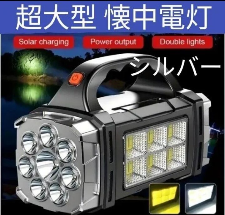 | 商品名稱 : | 超大型 LED 懐中電灯 高輝 充電式 4モード COBライト ソーラーパネル装備 防水 スマホ充電可能 ! シルバー |