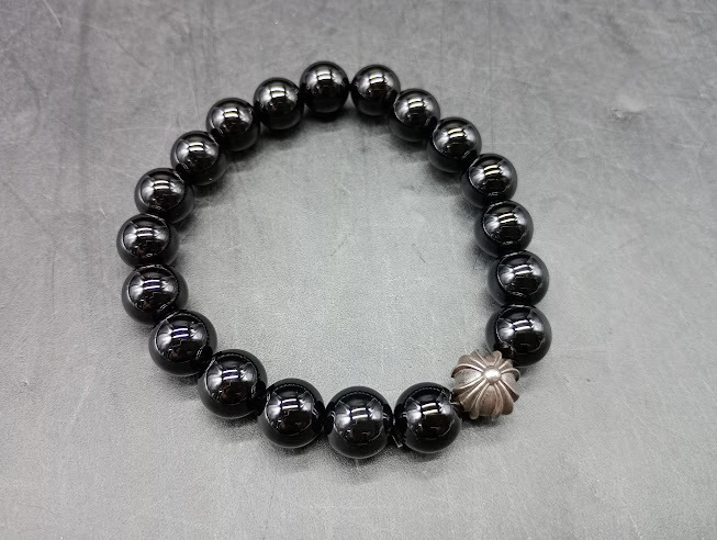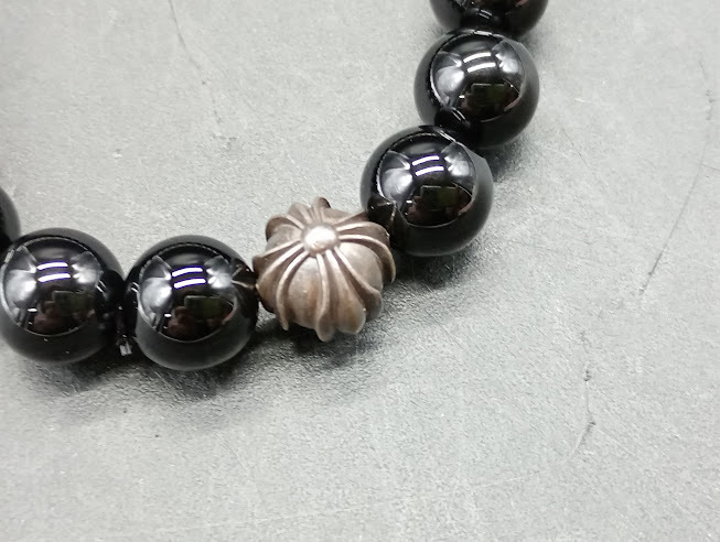シンプルなビーズの中、 クロスが 存在感を放つブレスレットです