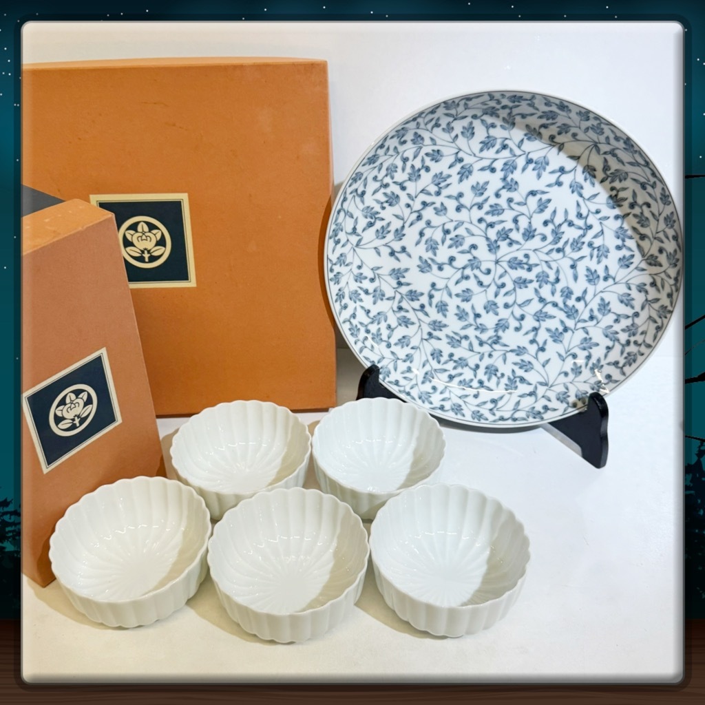 | 商品名稱 : | たち吉●橘吉●からくさ 大皿1枚・白菊 小鉢5個セット●未使用品 |