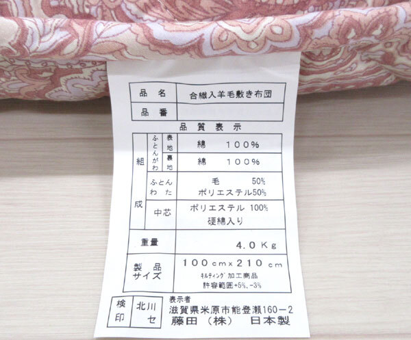 | (200)合繊入羊毛敷布団 シングルロング 日本製 | |